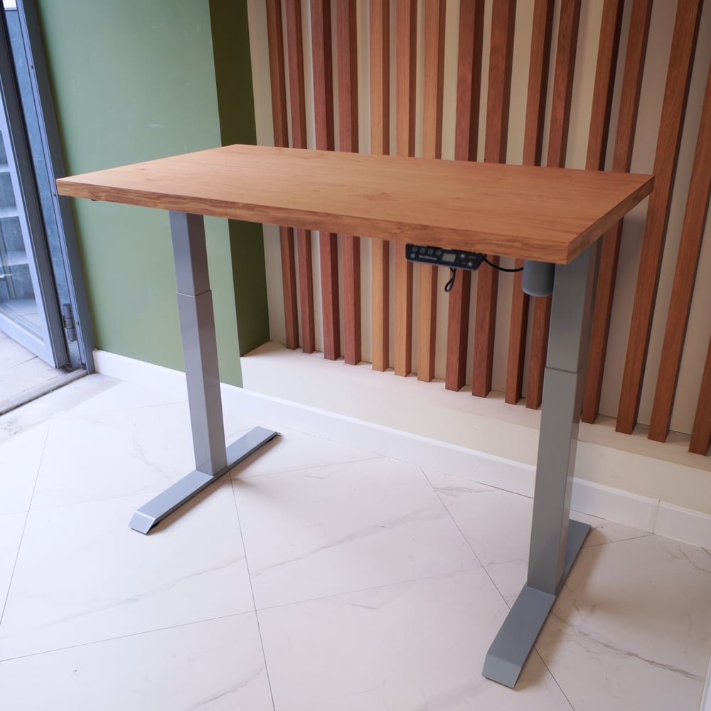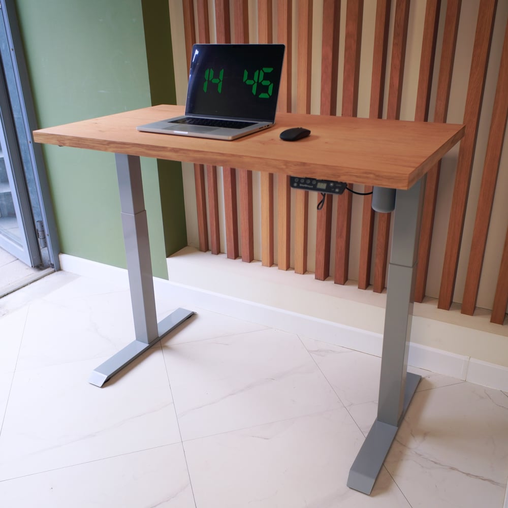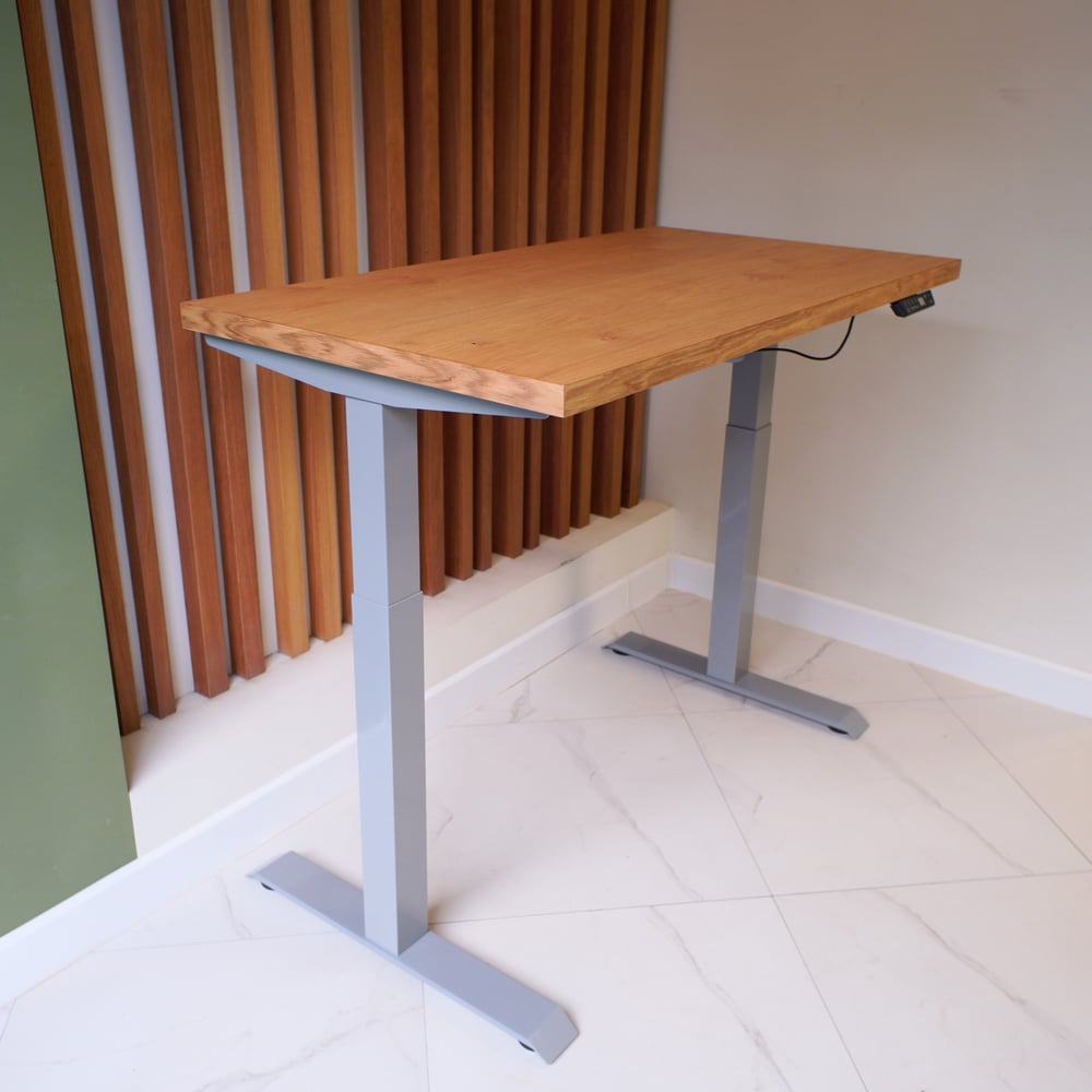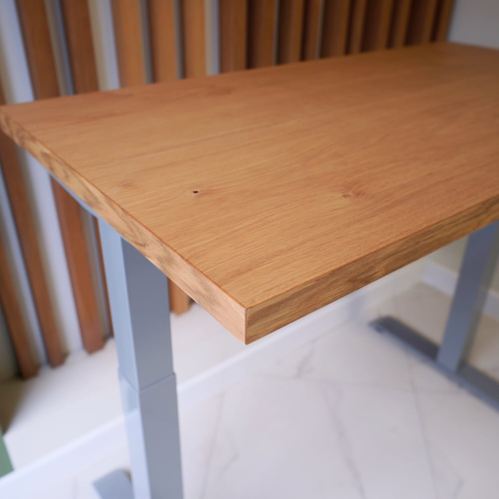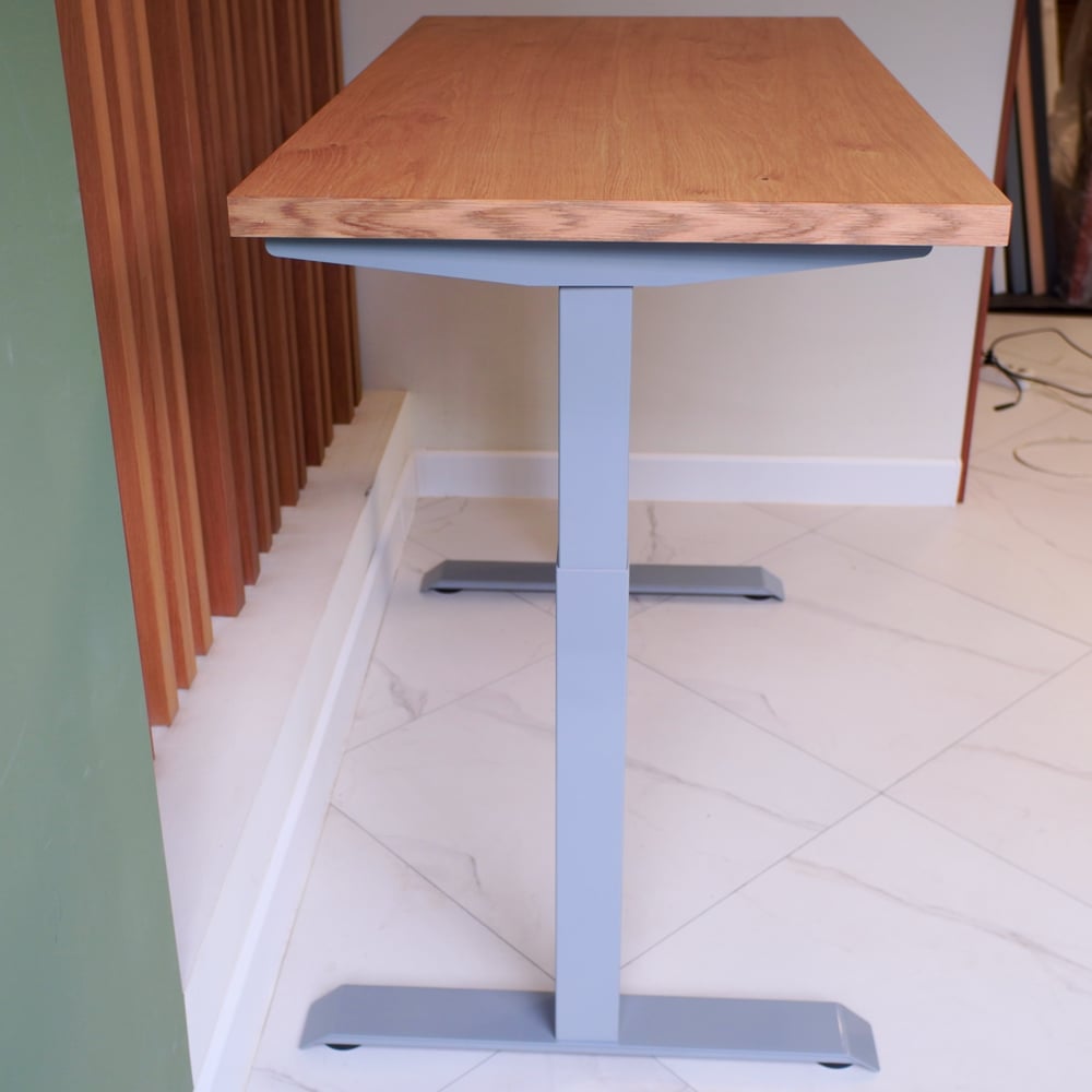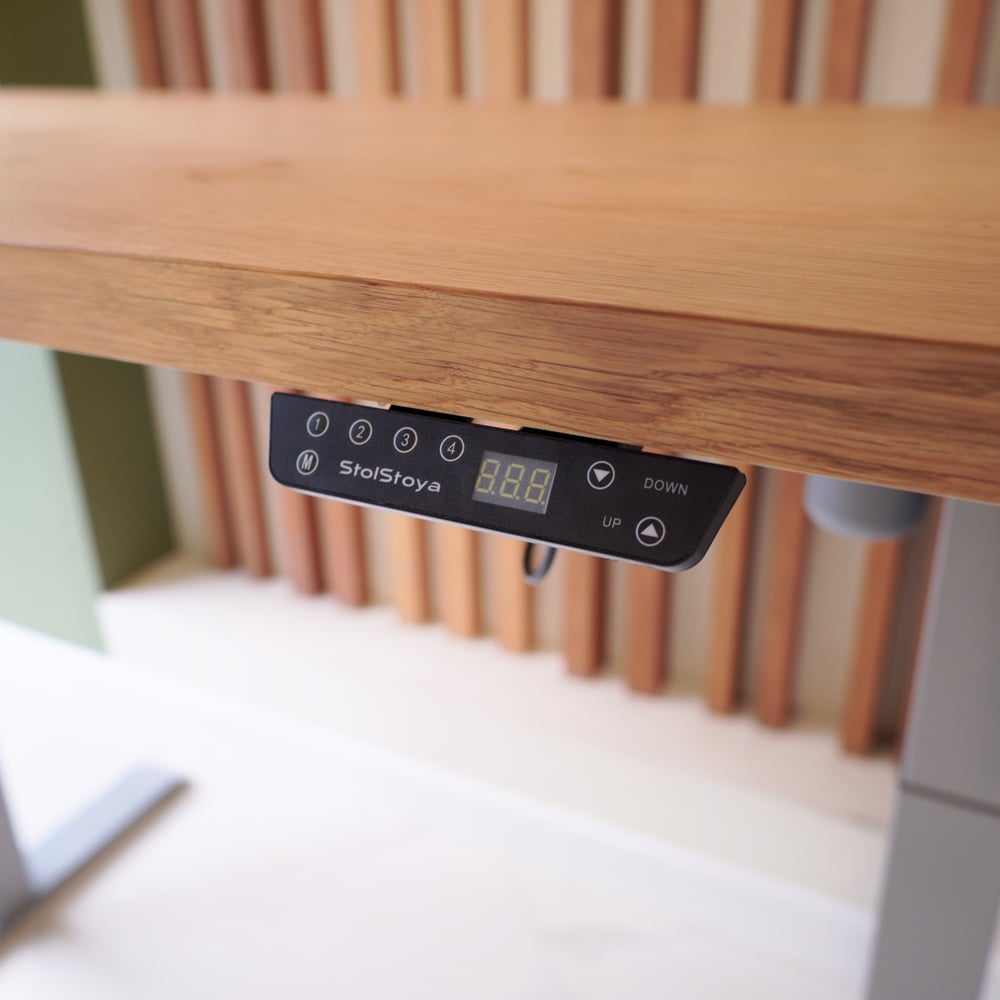 Стол StolStoya МОТОР UP с регулируемой высотой подстолье серое и столешница МДФ шпон дуб европейский SE211ISDE12065