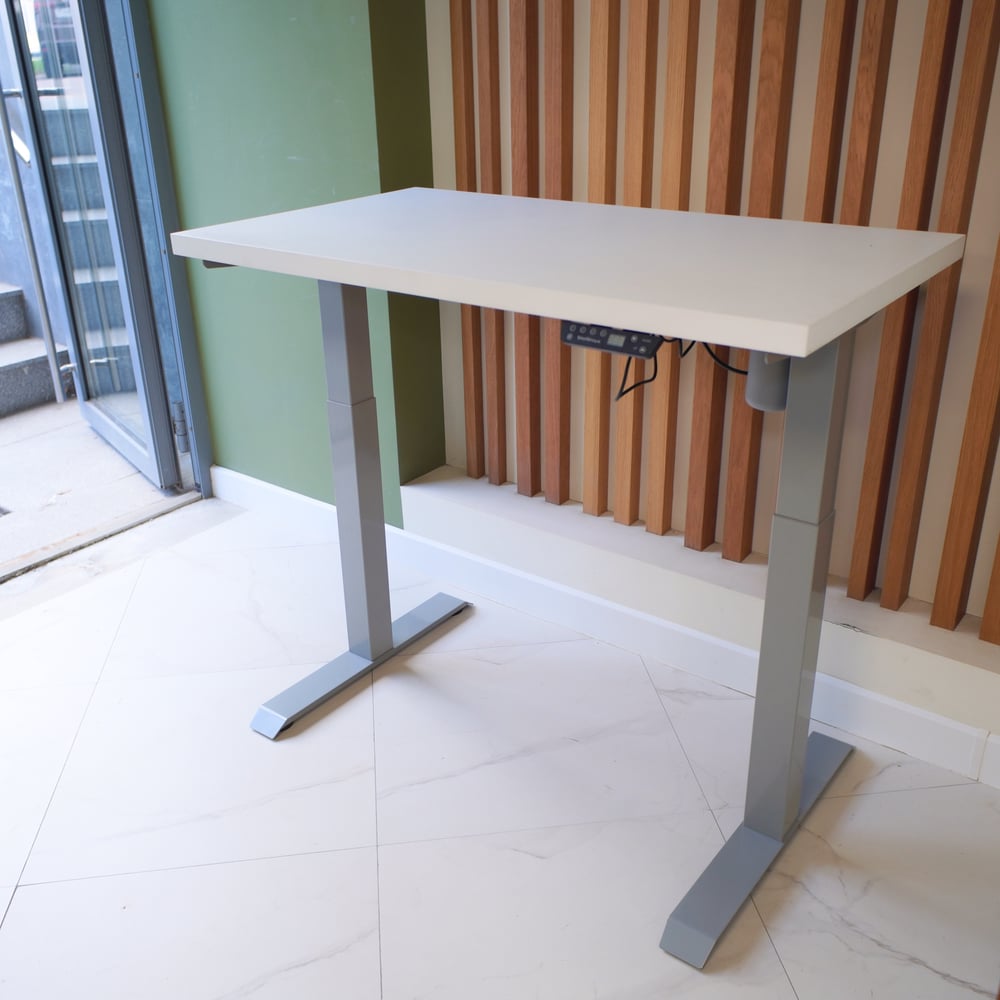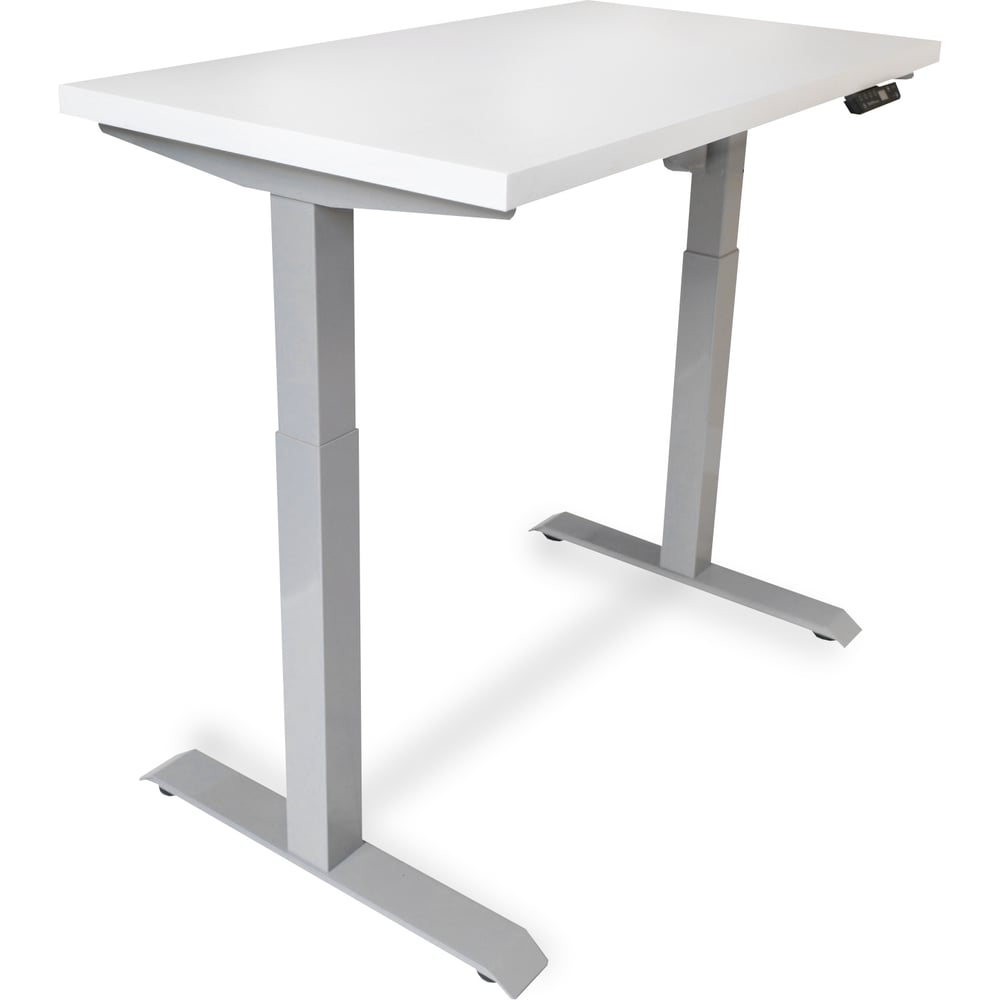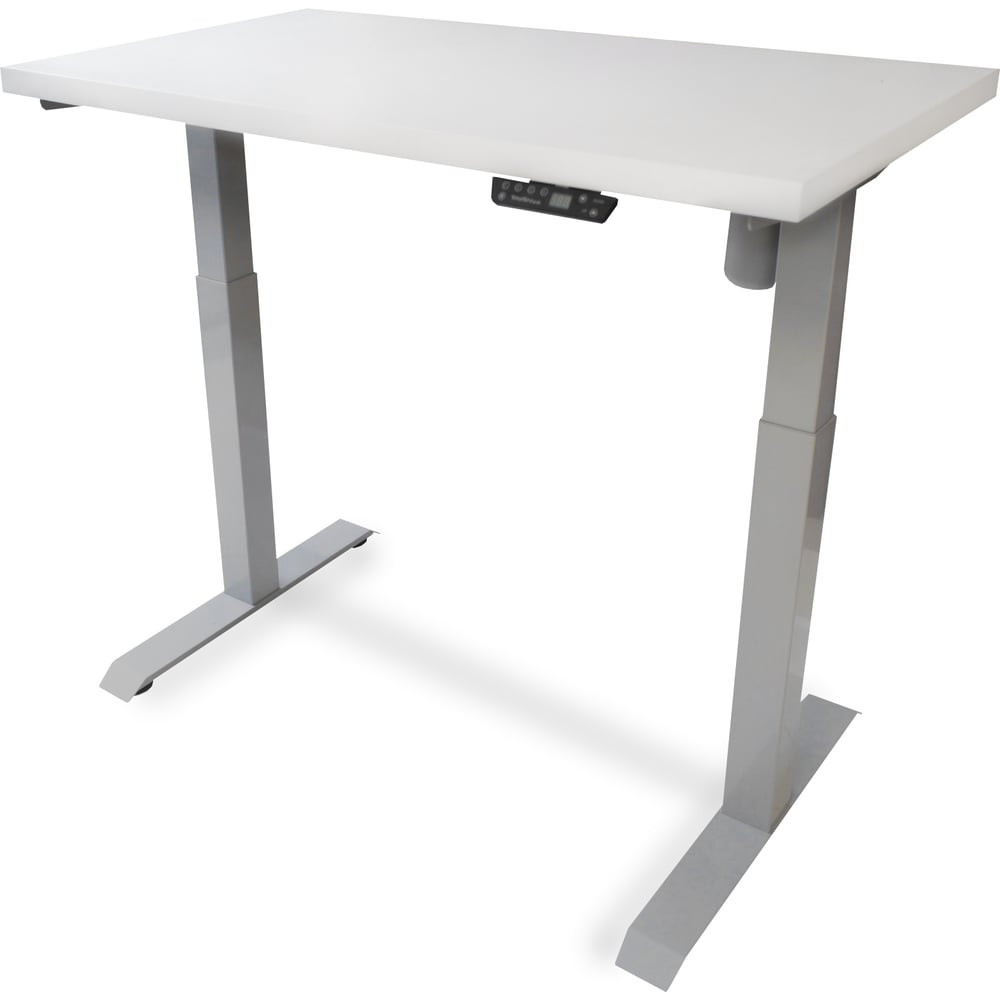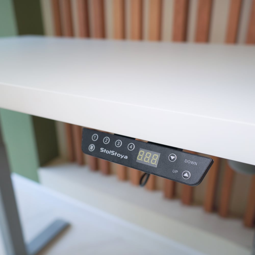 Стол StolStoya МОТОР UP с регулируемой высотой подстолье серое и столешница МДФ эмаль белая 140x70 SE211ISW14070