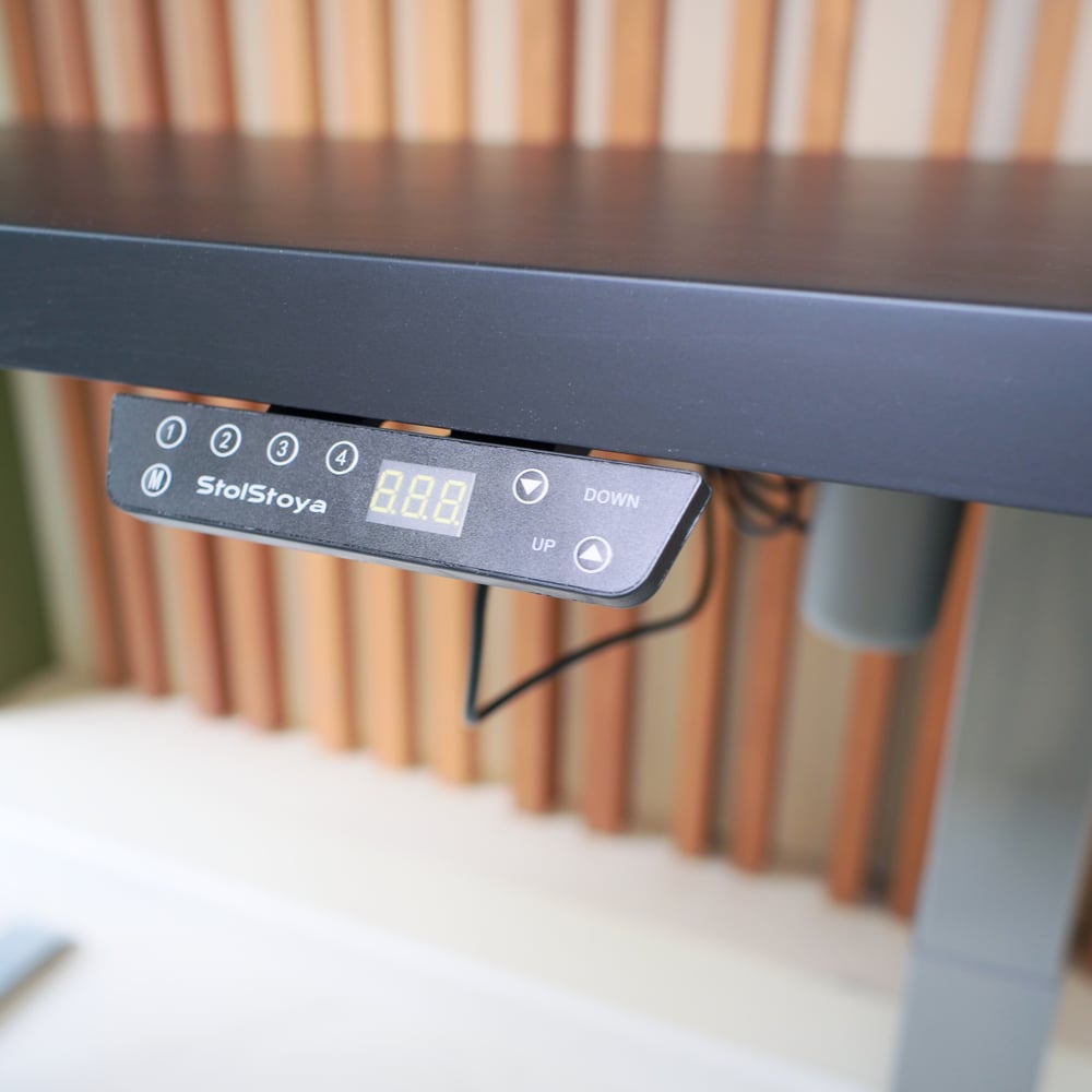 Стол StolStoya МОТОР UP с регулируемой высотой подстолье серое и столешница МДФ эмаль черная 120x65 SE211ISB12065