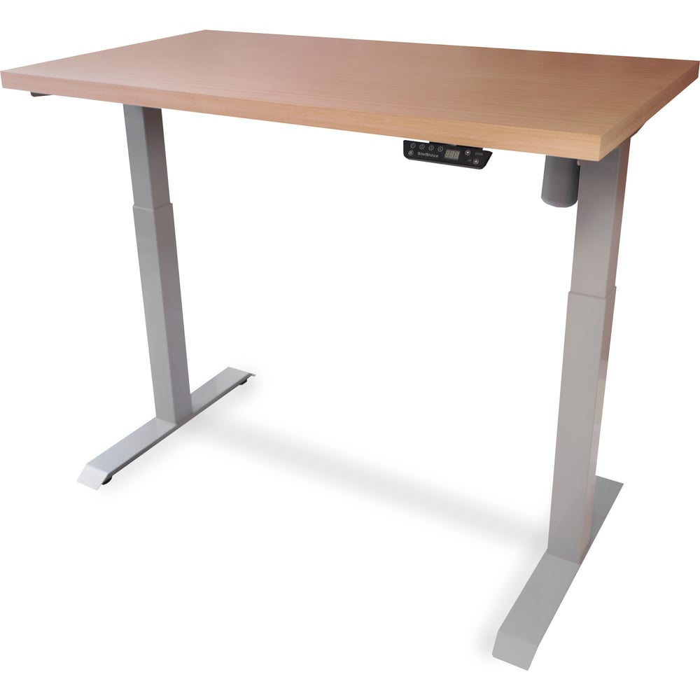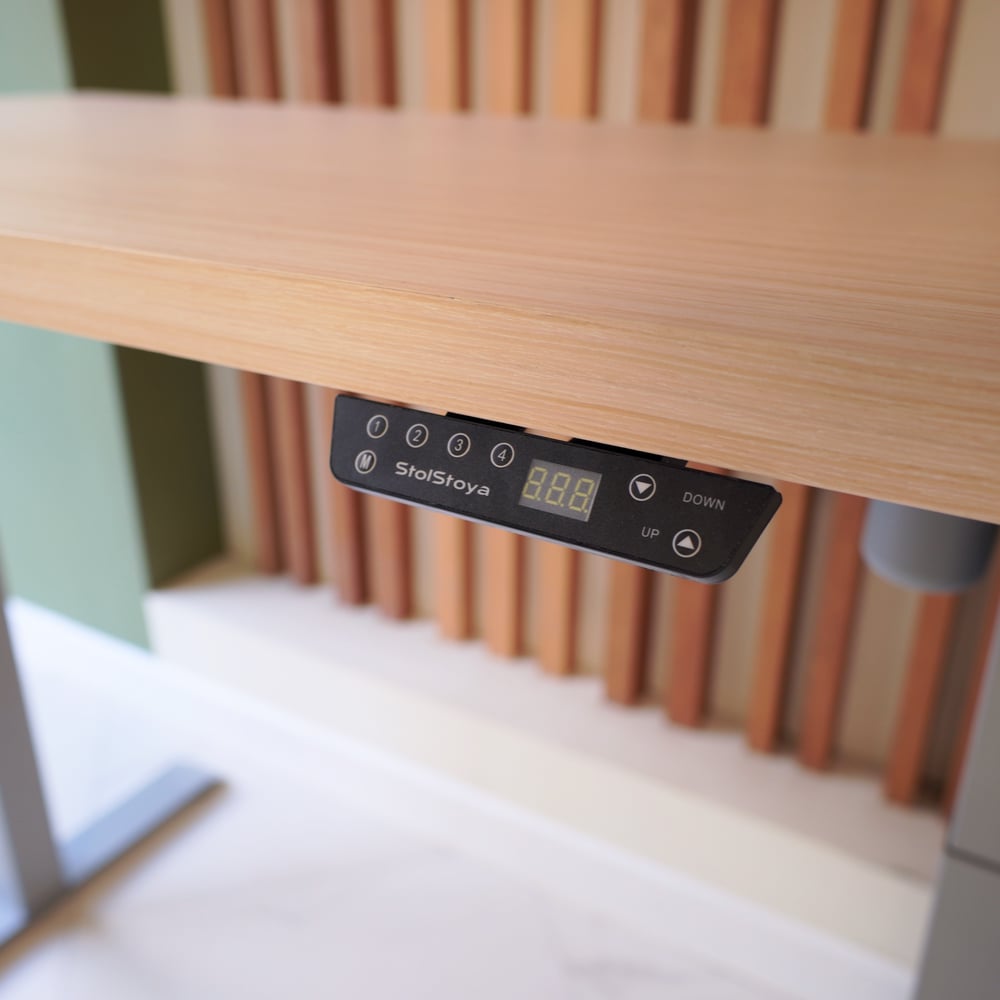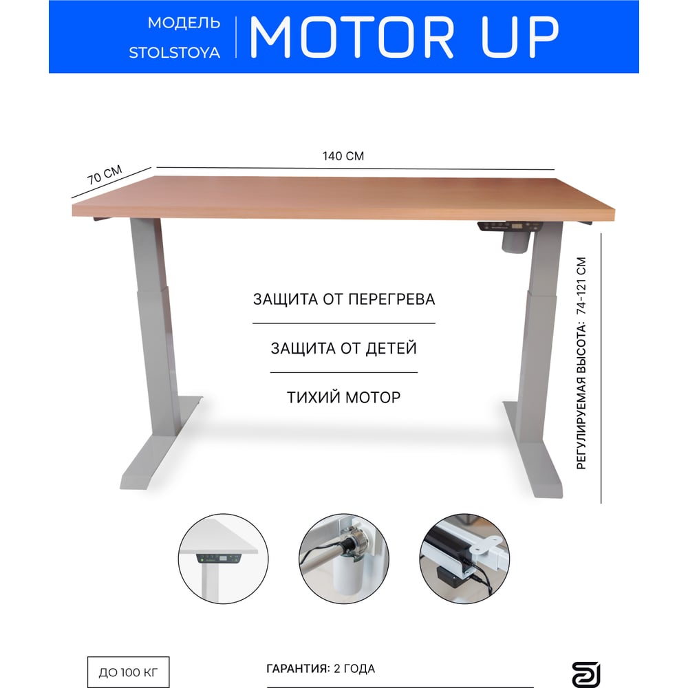 Стол StolStoya МОТОР UP с регулируемой высотой подстолье серое и столешница МДФ шпон беленый дуб 140x70 SE211ISBD14070