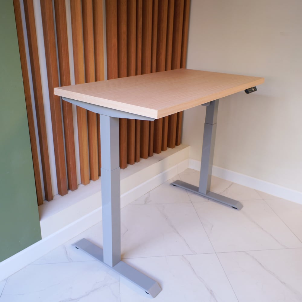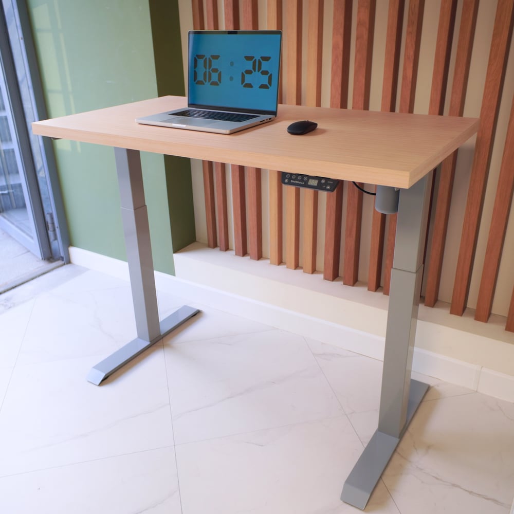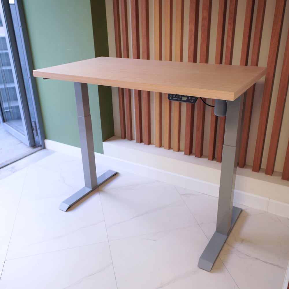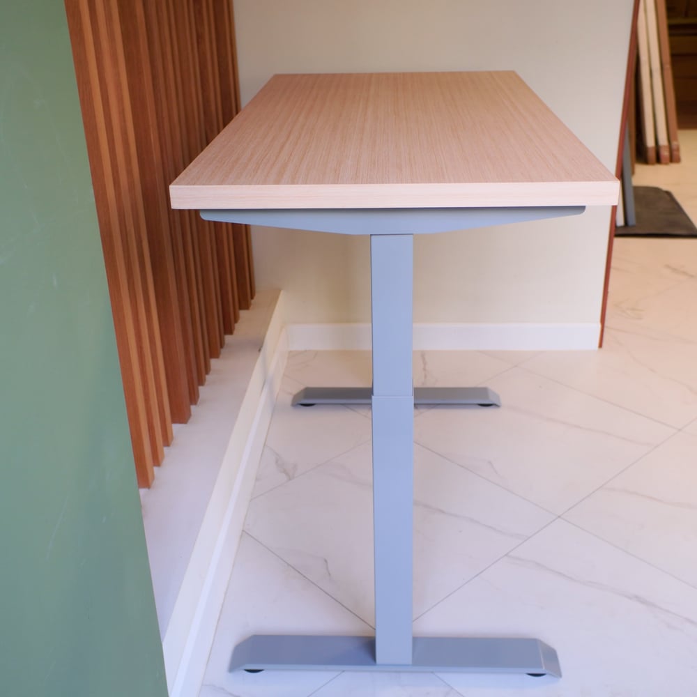 Стол StolStoya МОТОР UP с регулируемой высотой подстолье серое и столешница МДФ шпон беленый дуб 140x70 SE211ISBD14070