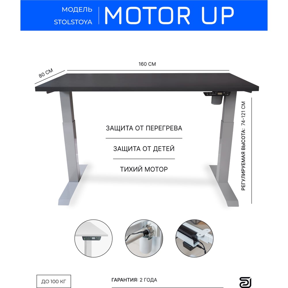 Стол с регулируемой высотой StolStoya МОТОР UP подстолье серое, столешница МДФ, эмаль сланцево-серая, 160x80 SE211ISSS16080
