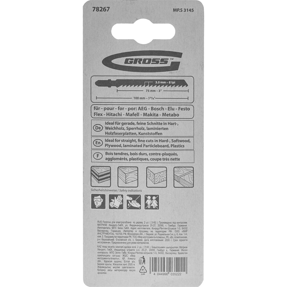 Полотна для электролобзика по дереву GROSS 3145 78267