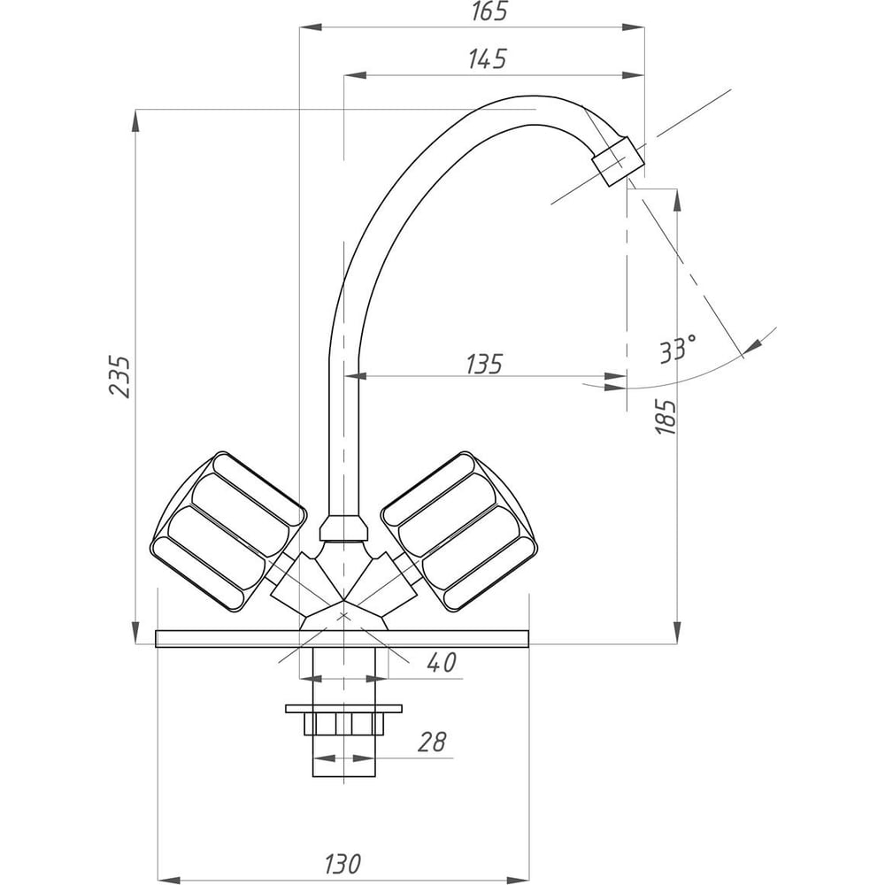Покрытие глянцевое Цвет хром Тип установки настольный Стиль классический Материал корпуса сплав цинк, медь, алюминий Поворотный излив да Назначение для кухни Тип крепления на гайку Гибкий излив нет Длина излива 135 мм Высота смесителя 235 мм Лейка нет Термостат нет Встраиваемый нет Подводка в комплекте гибкая Аэратор да Переключатель на фильтр нет Тип смесителя двухрычажный Форма излива воды традиционная Запорный клапан керамическая кран-букса Форма смесителя округлая Выдвижной излив нет Излив есть Складной нет С щеткой нет Двойной излив нет Размер крепления G1/2 Направление струи под углом Диаметр отверстия в раковине 40 мм Расположение термостата без термостата
