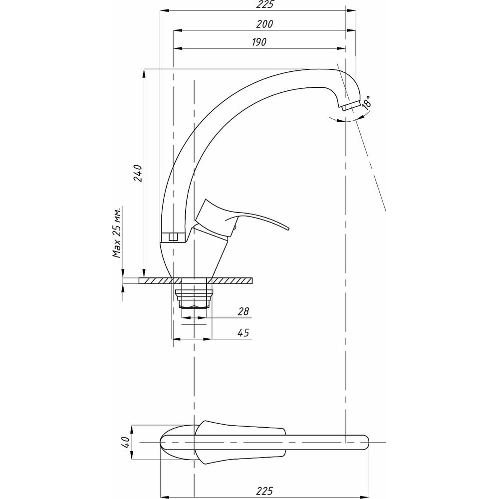 | Длина излива | 190 мм |