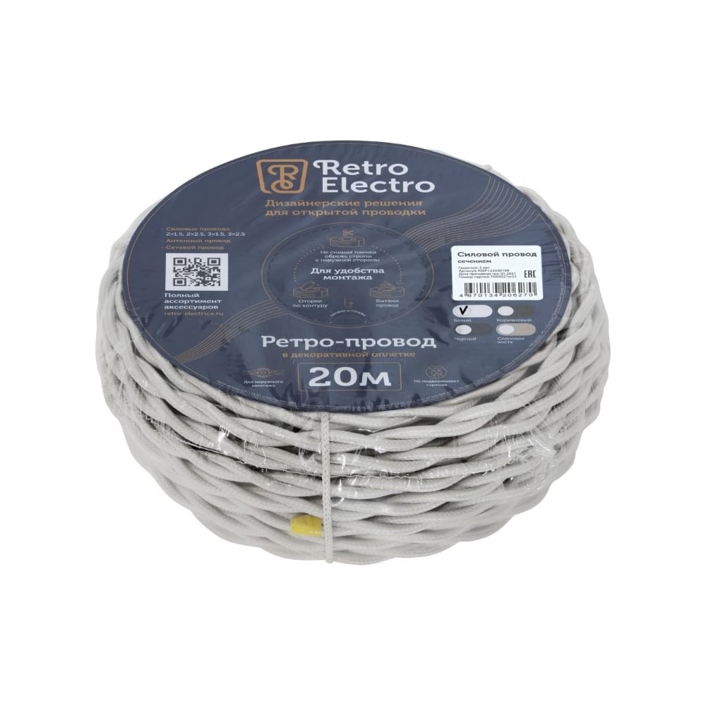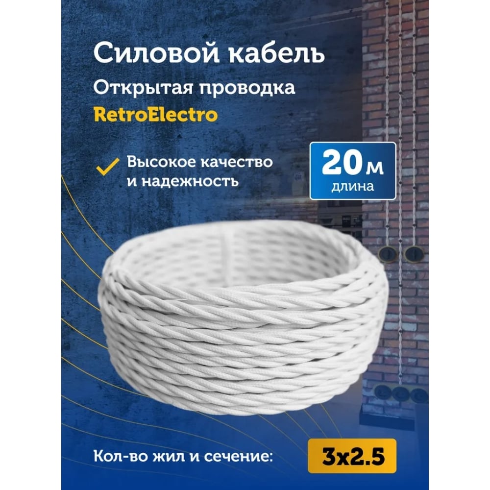 Силовой кабель Retro Electro, ретро, 3х2,5, белый, длина бухты 20 2254738