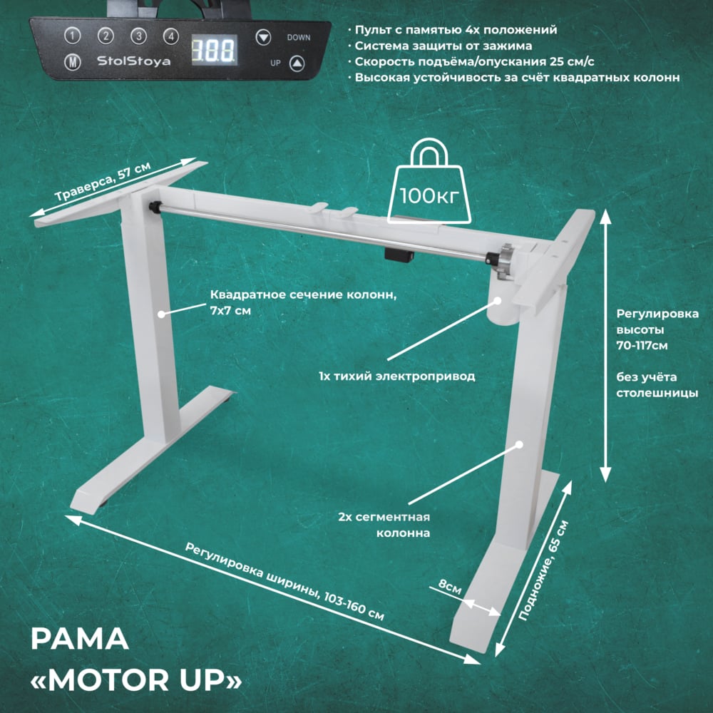 Рама для стола StolStoya с регулируемой высотой МОТОР UP PE211IW