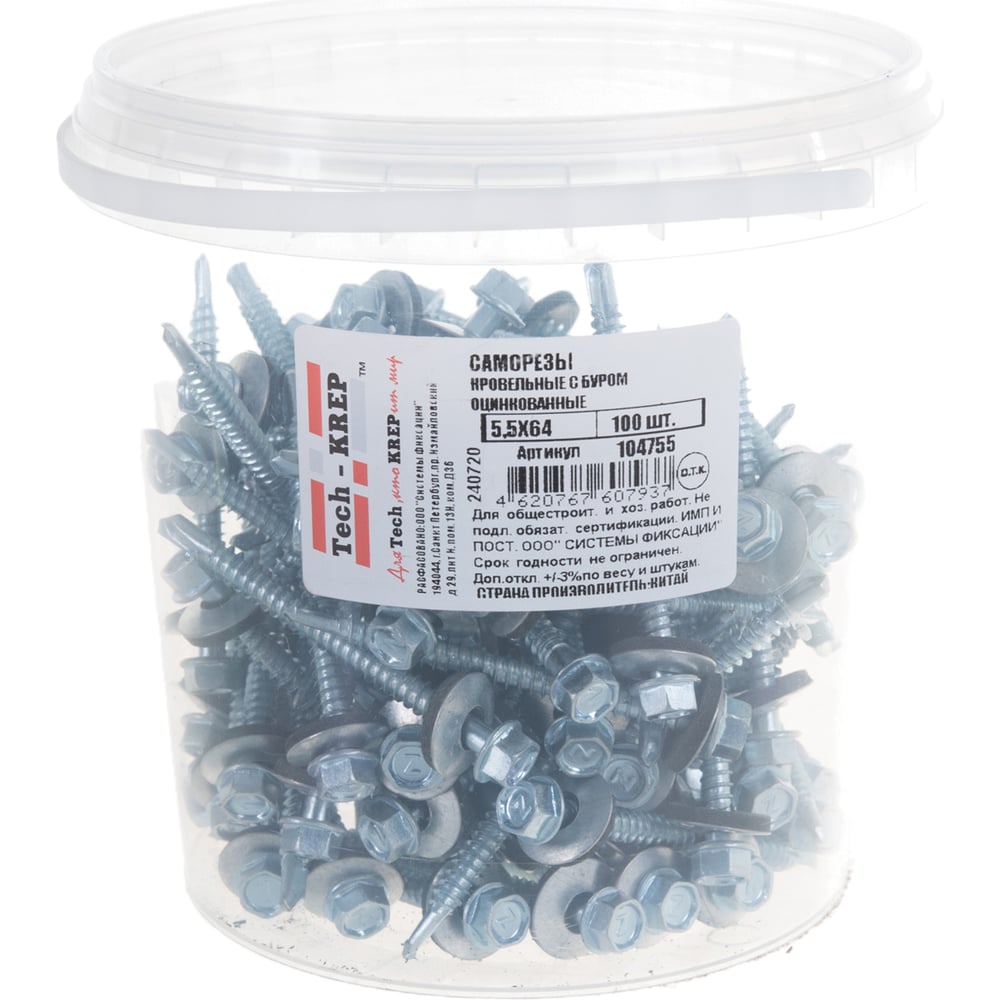 Кровельный саморез Tech-Krep КР ZP сверло 5,5х64 100 шт, ведро 104755