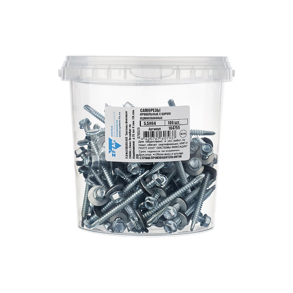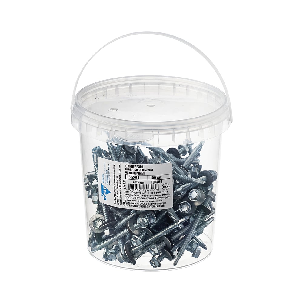 Саморез КР ZP со сверлом, 5,5x64 мм, 100 шт. в ведре Zitar 104755