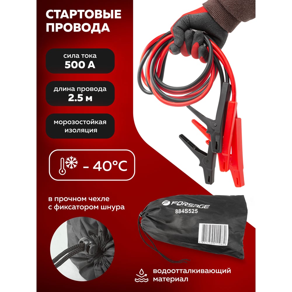 Стартовые провода Forsage F-884S525 500 A, 2.5 м, в чехле 28842