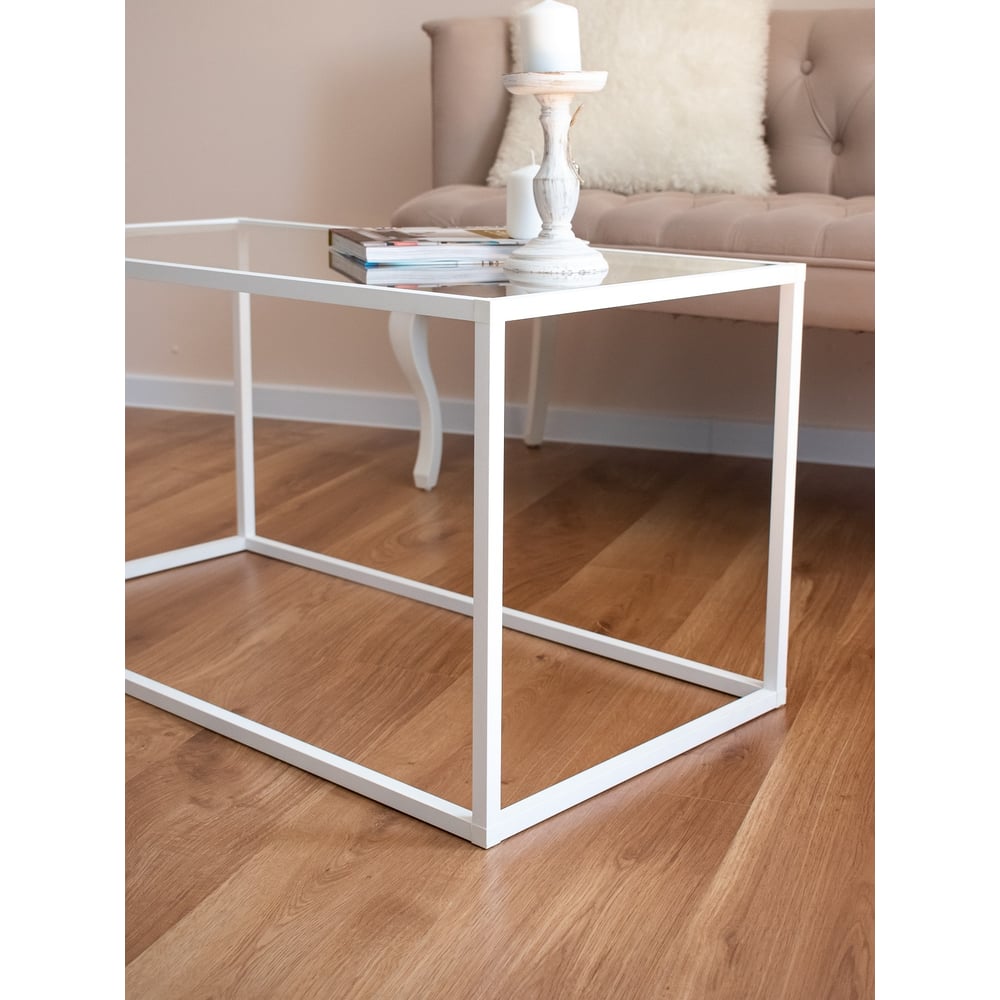Журнальный стол НАЙДИ со стеклом, белый муар, стекло бесцветное LSS-5303