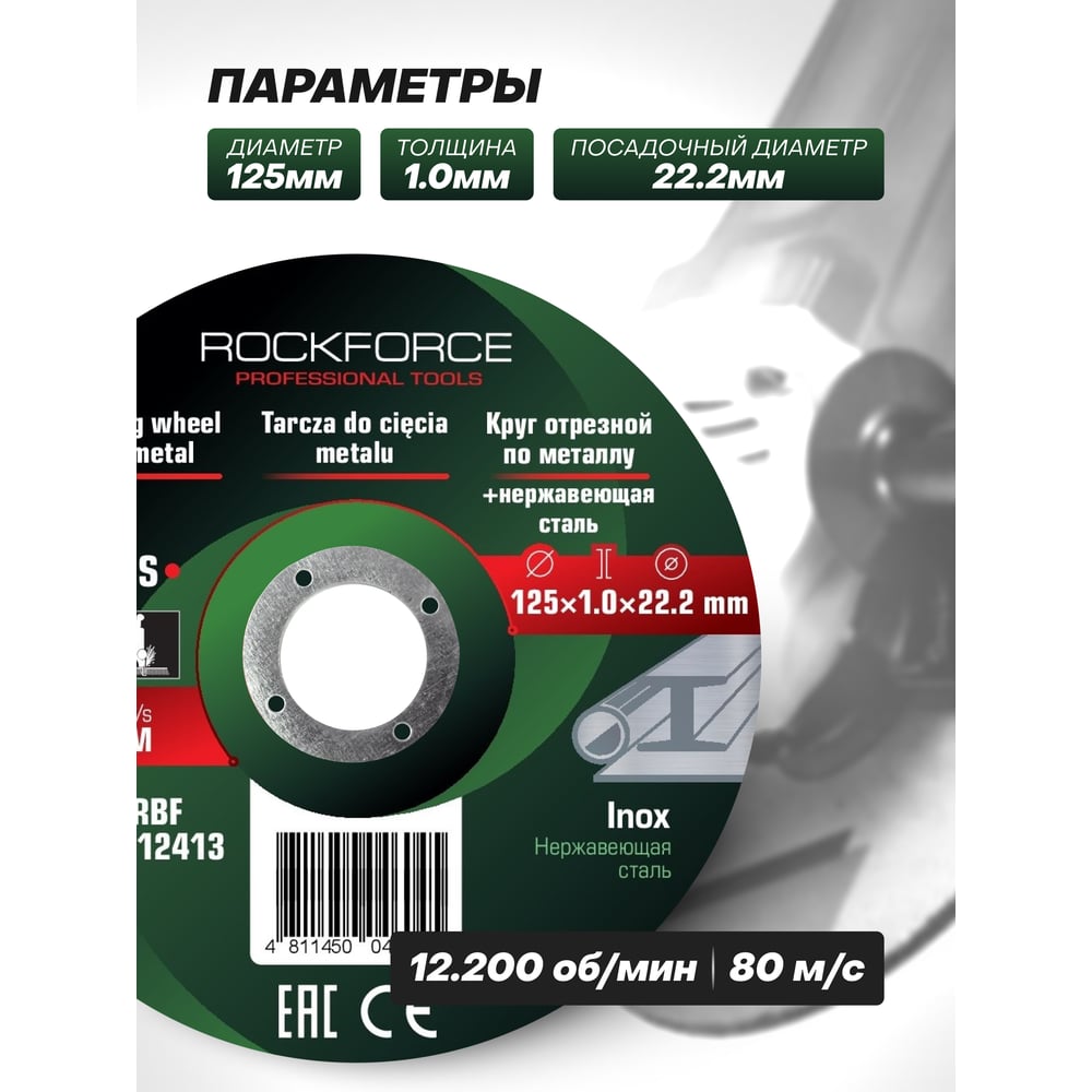 Круг отрезной по металлу и нержавейке 125x1x22.2 мм Rockforce RF-CW705S(49277)