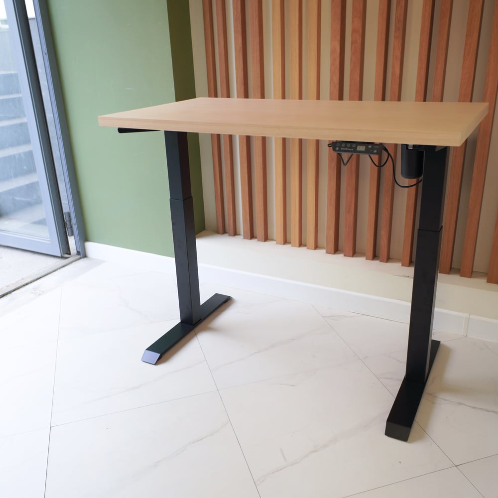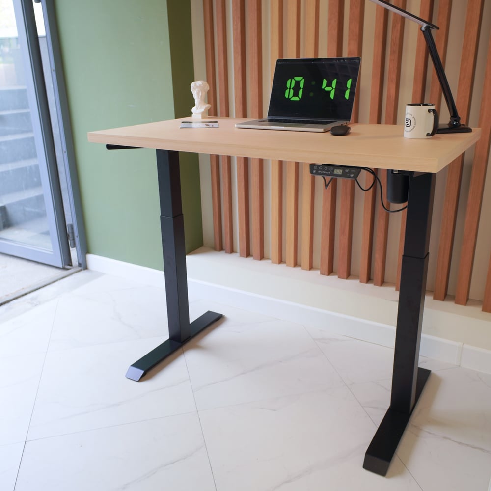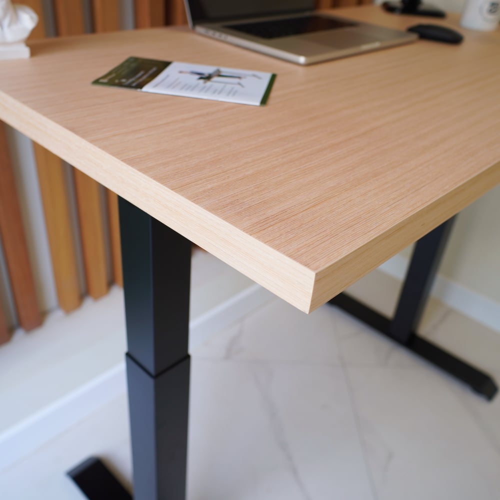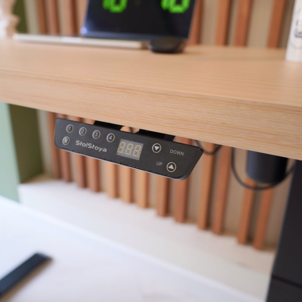 Стол StolStoya МОТОР UP с регулируемой высотой подстолье черное и столешница МДФ шпон беленый дуб SE211IBBD12065