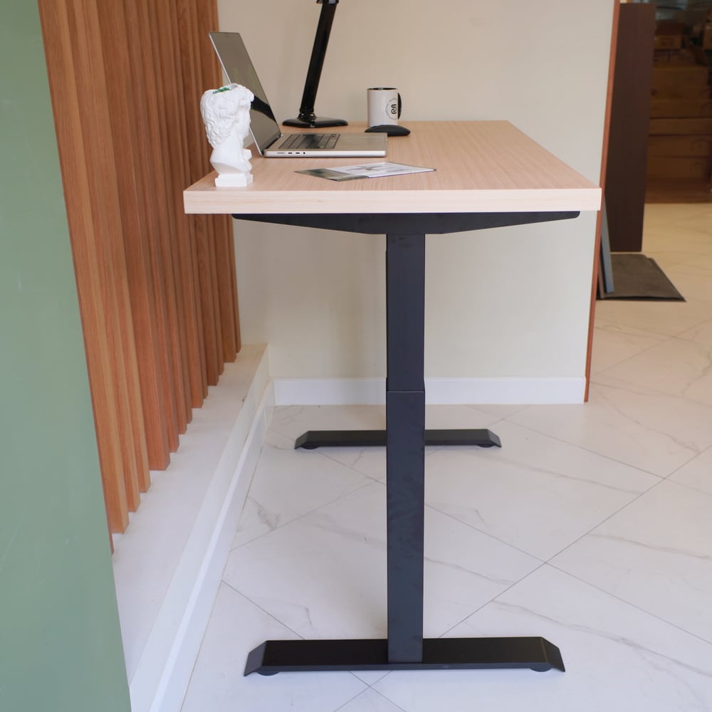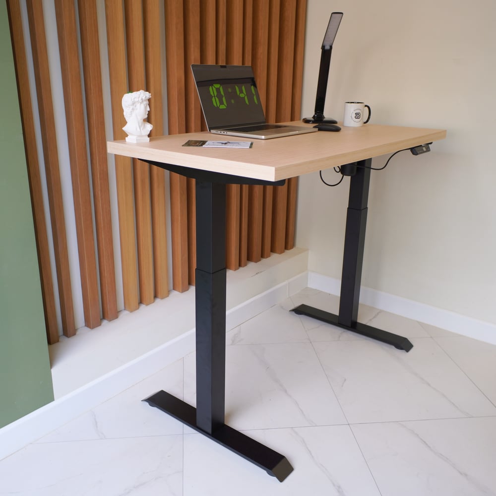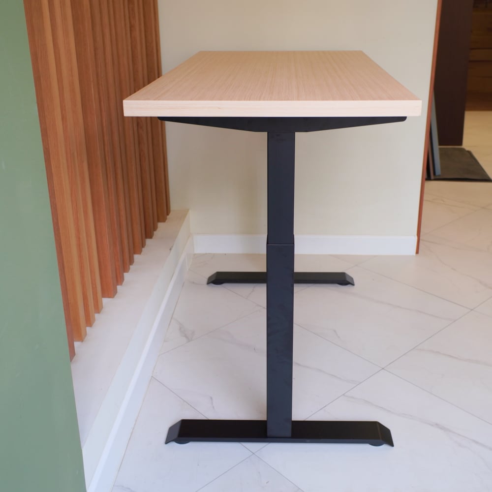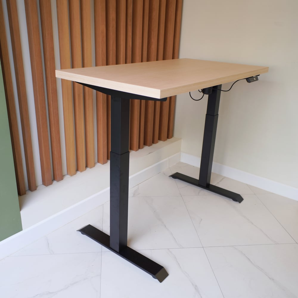 Стол StolStoya МОТОР UP с регулируемой высотой подстолье черное и столешница МДФ шпон беленый дуб SE211IBBD12065