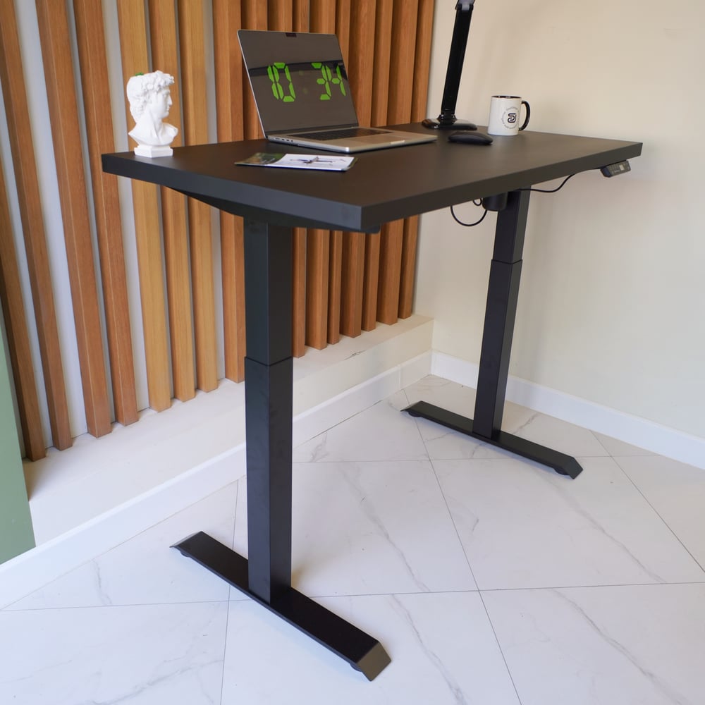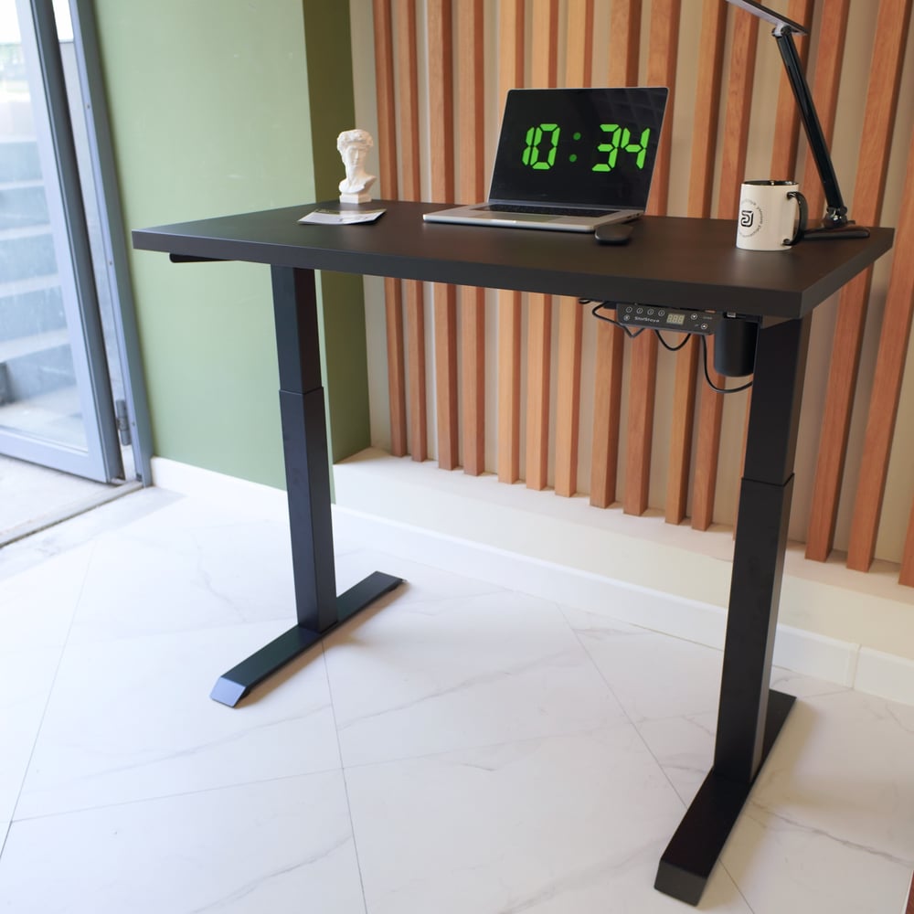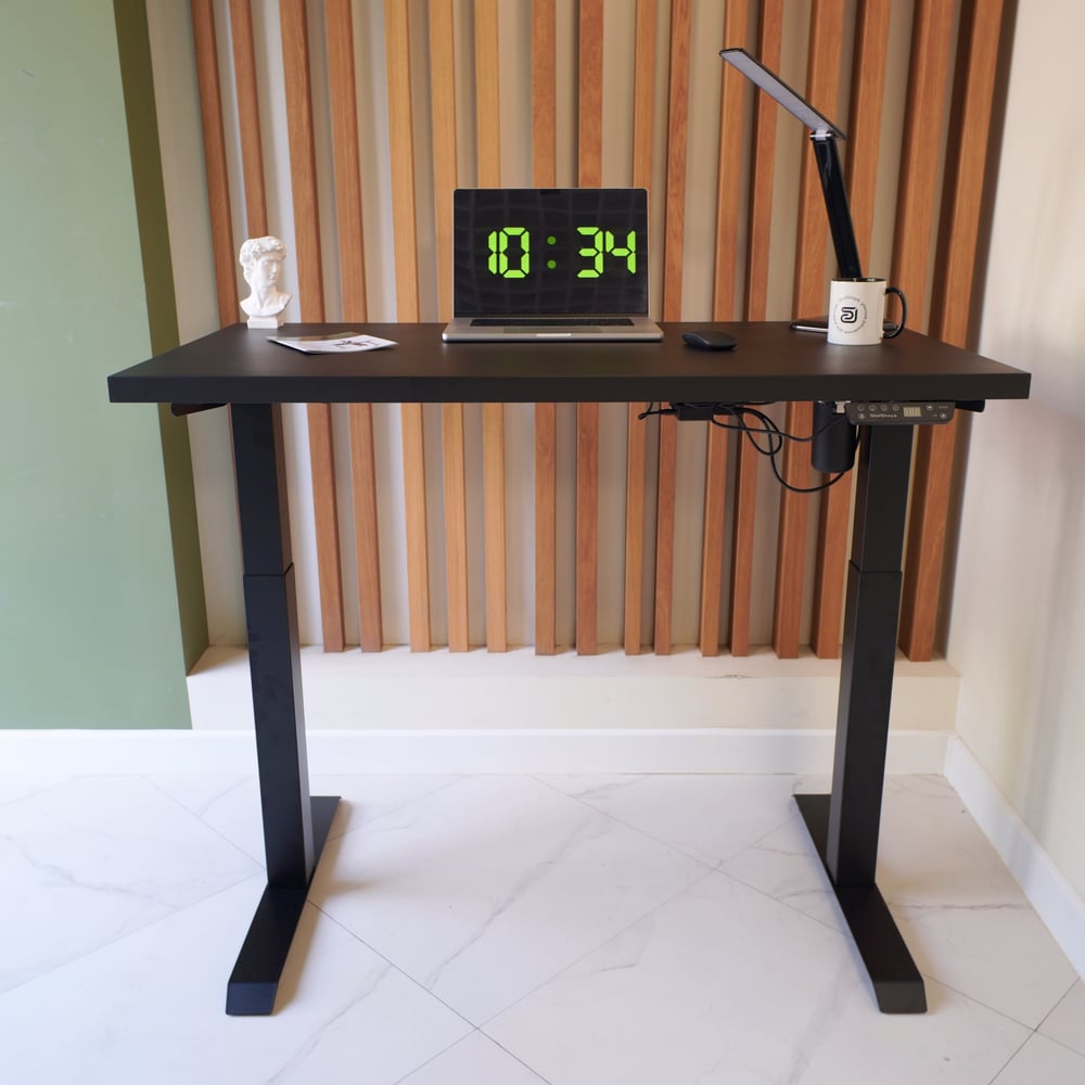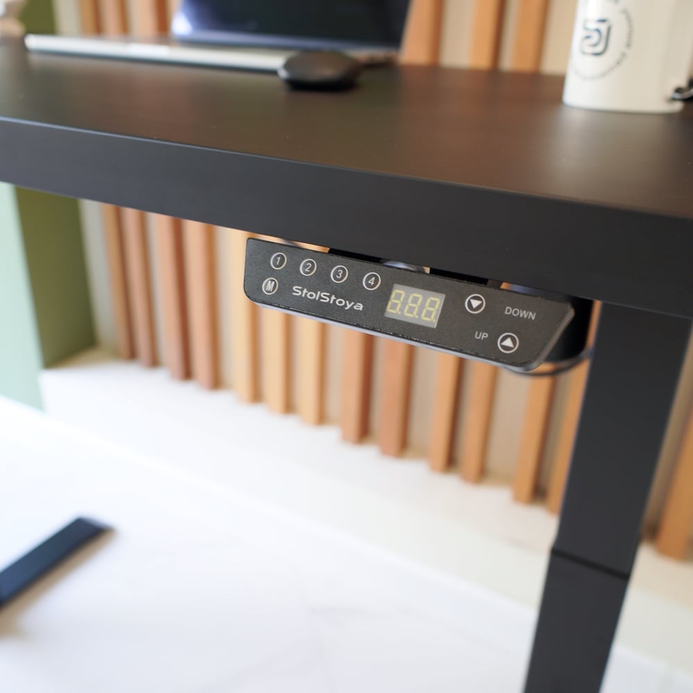 Стол StolStoya МОТОР UP с регулируемой высотой подстолье черное и столешница МДФ эмаль черная 120x65 SE211IBB12065