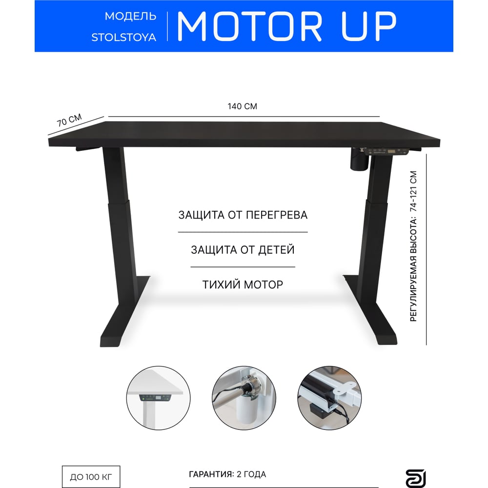 Стол StolStoya МОТОР UP с регулируемой высотой подстолье черное и столешница МДФ эмаль черная 140x70 SE211IBB14070
