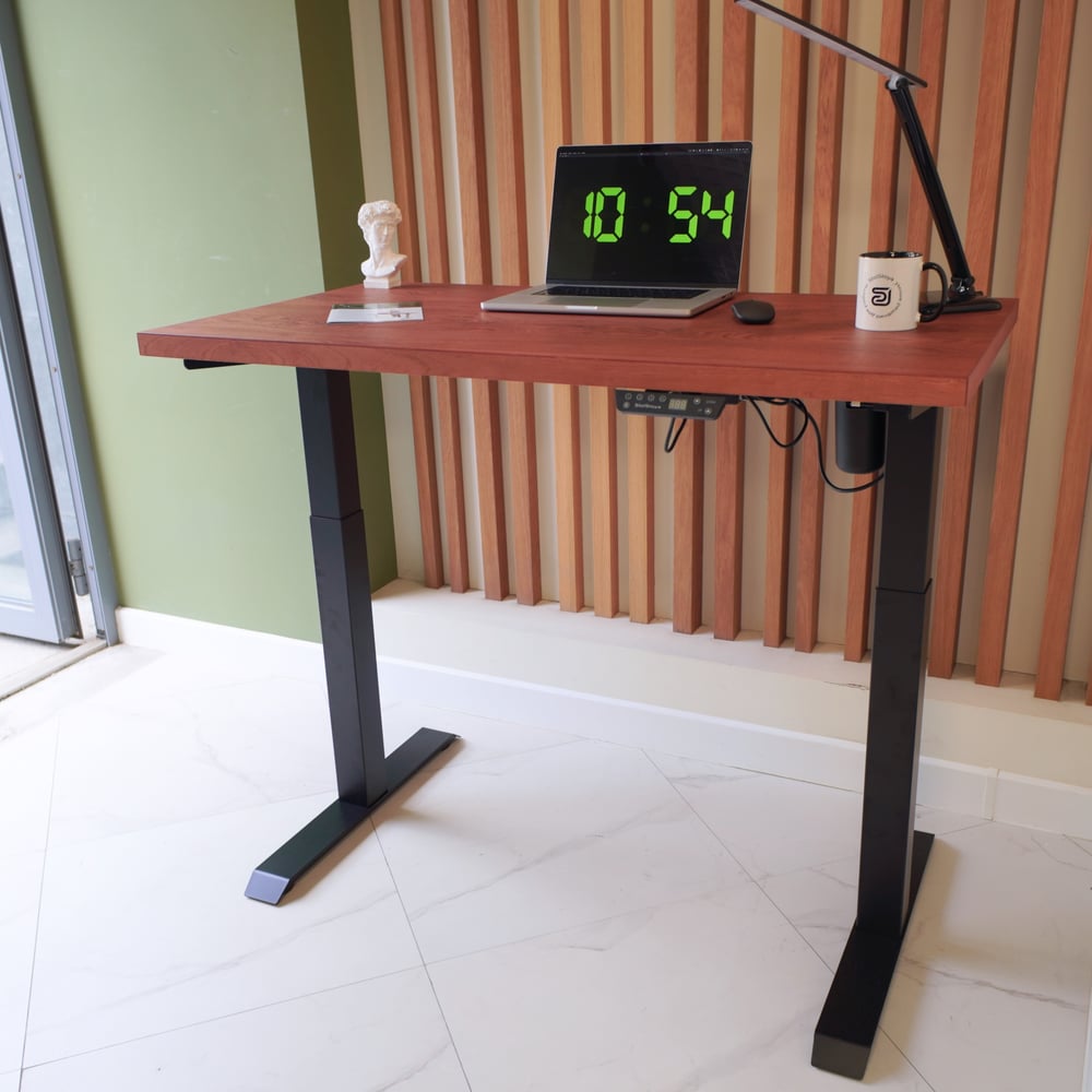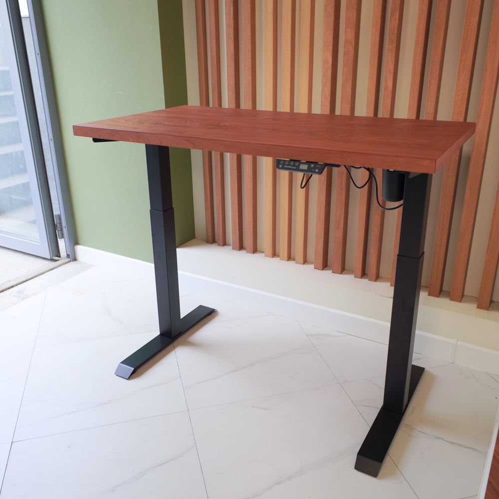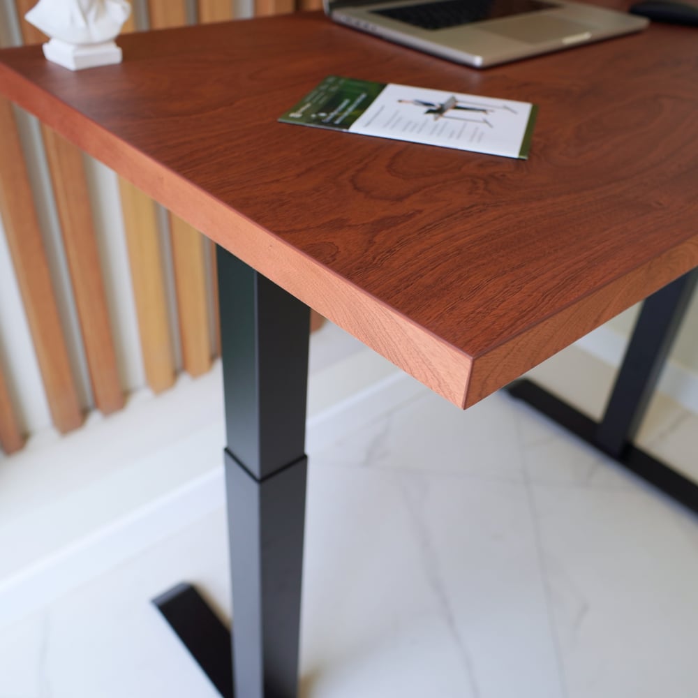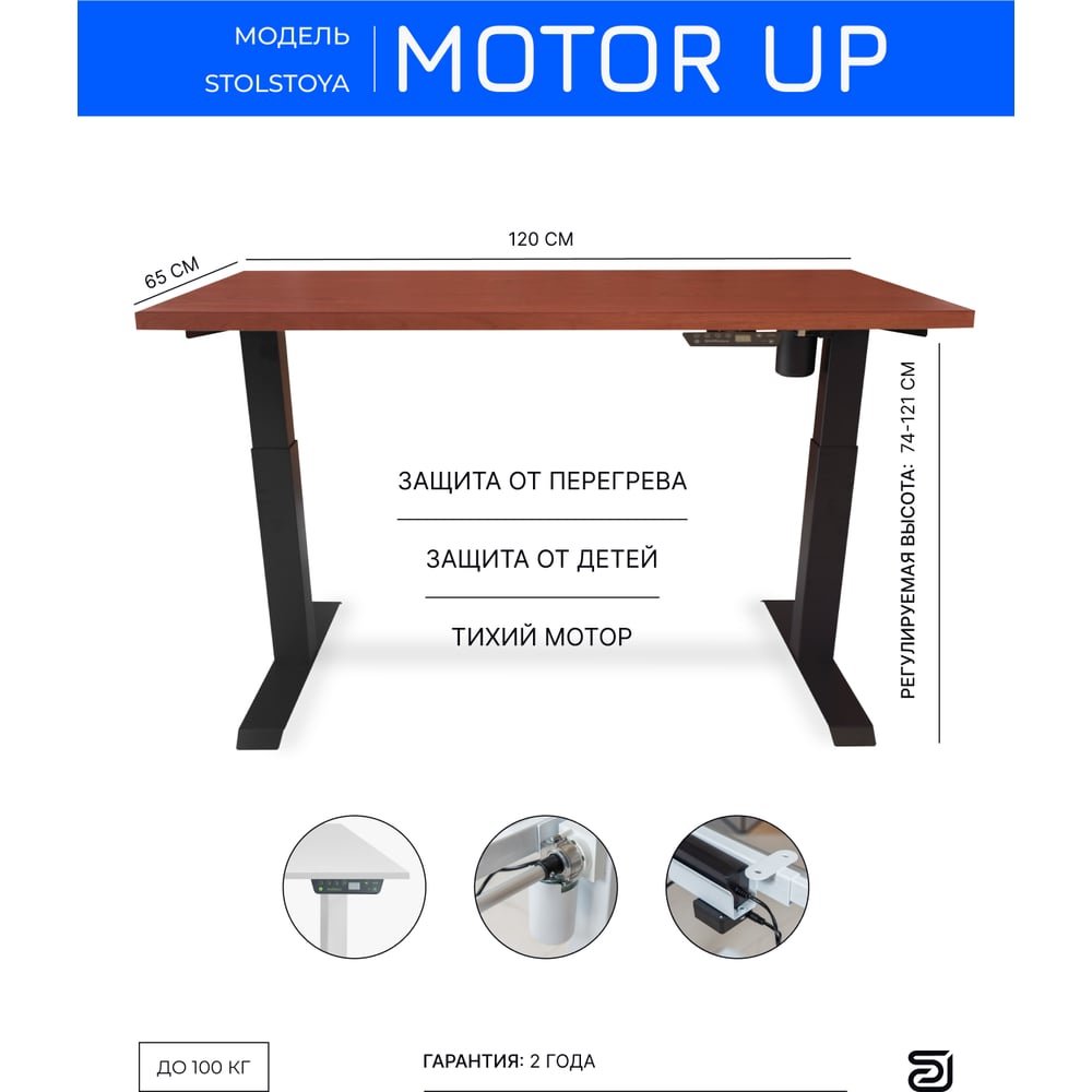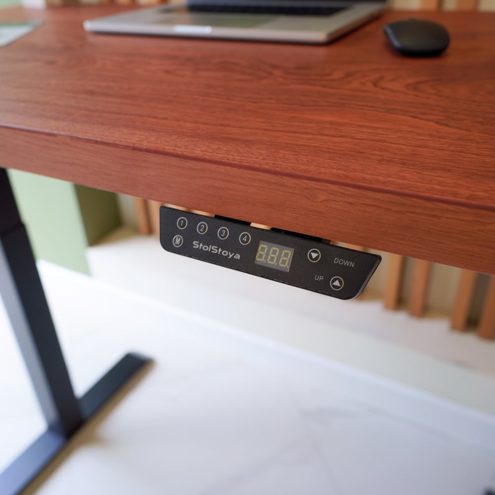 Стол StolStoya МОТОР UP с регулируемой высотой, подстолье черное и столешница МДФ шпон красное дерево SE211IBKD12065
