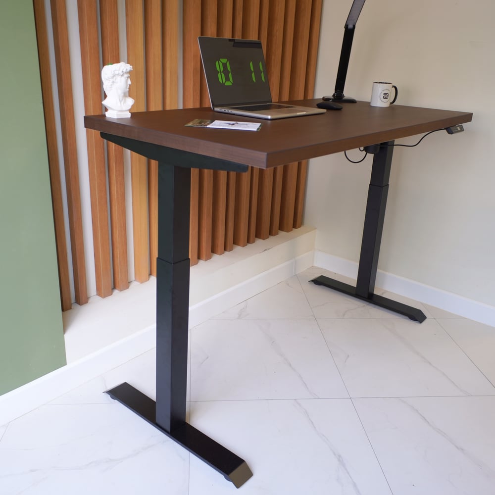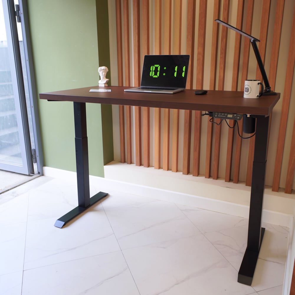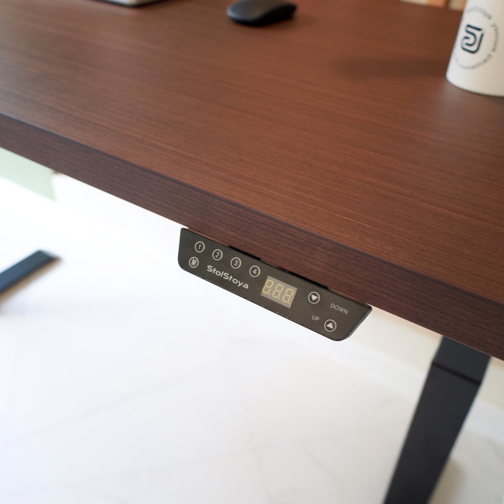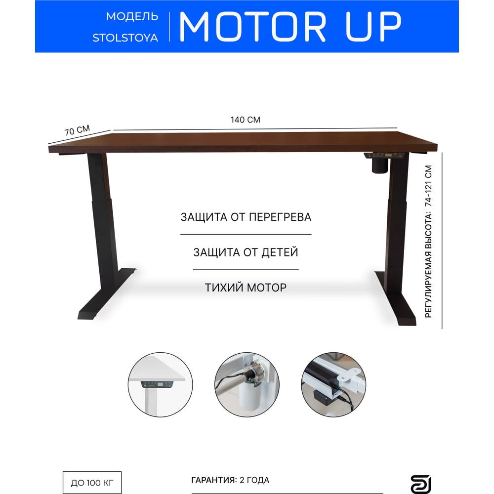 Стол StolStoya МОТОР UP с регулируемой высотой подстолье черное и столешница МДФ шпон венге 140x70 SE211IBV14070