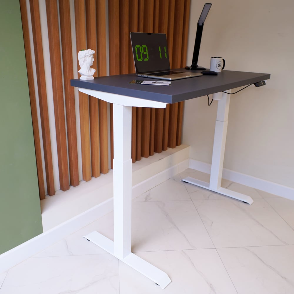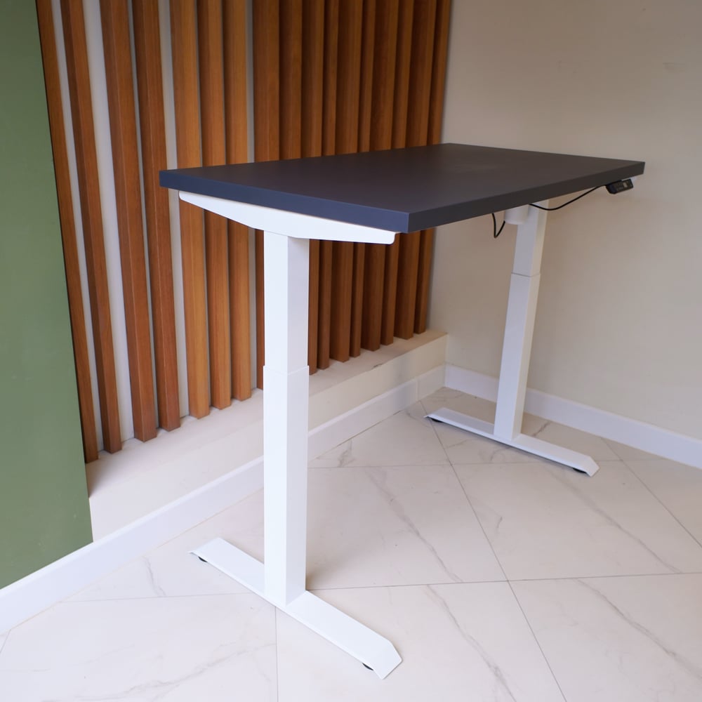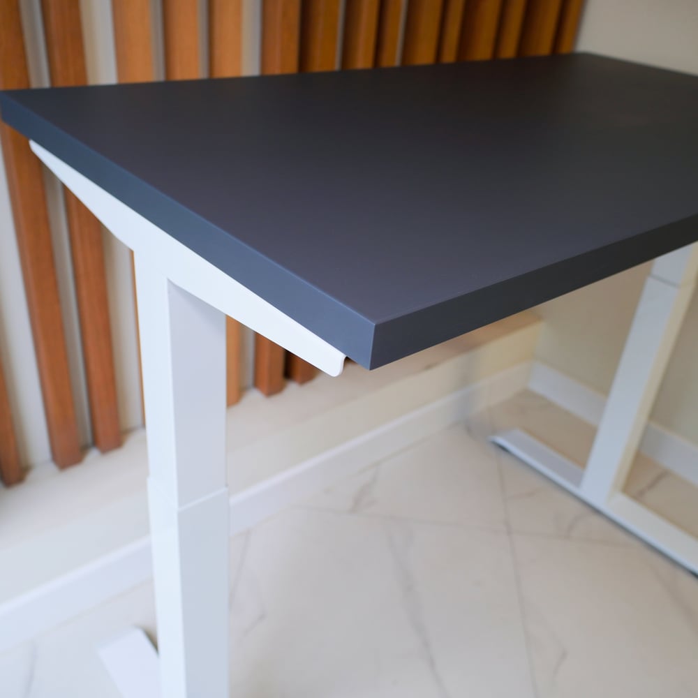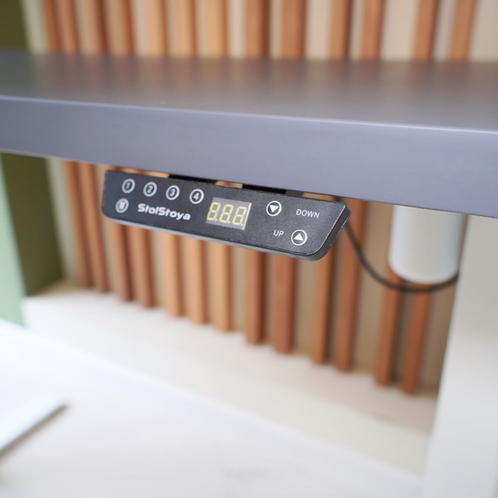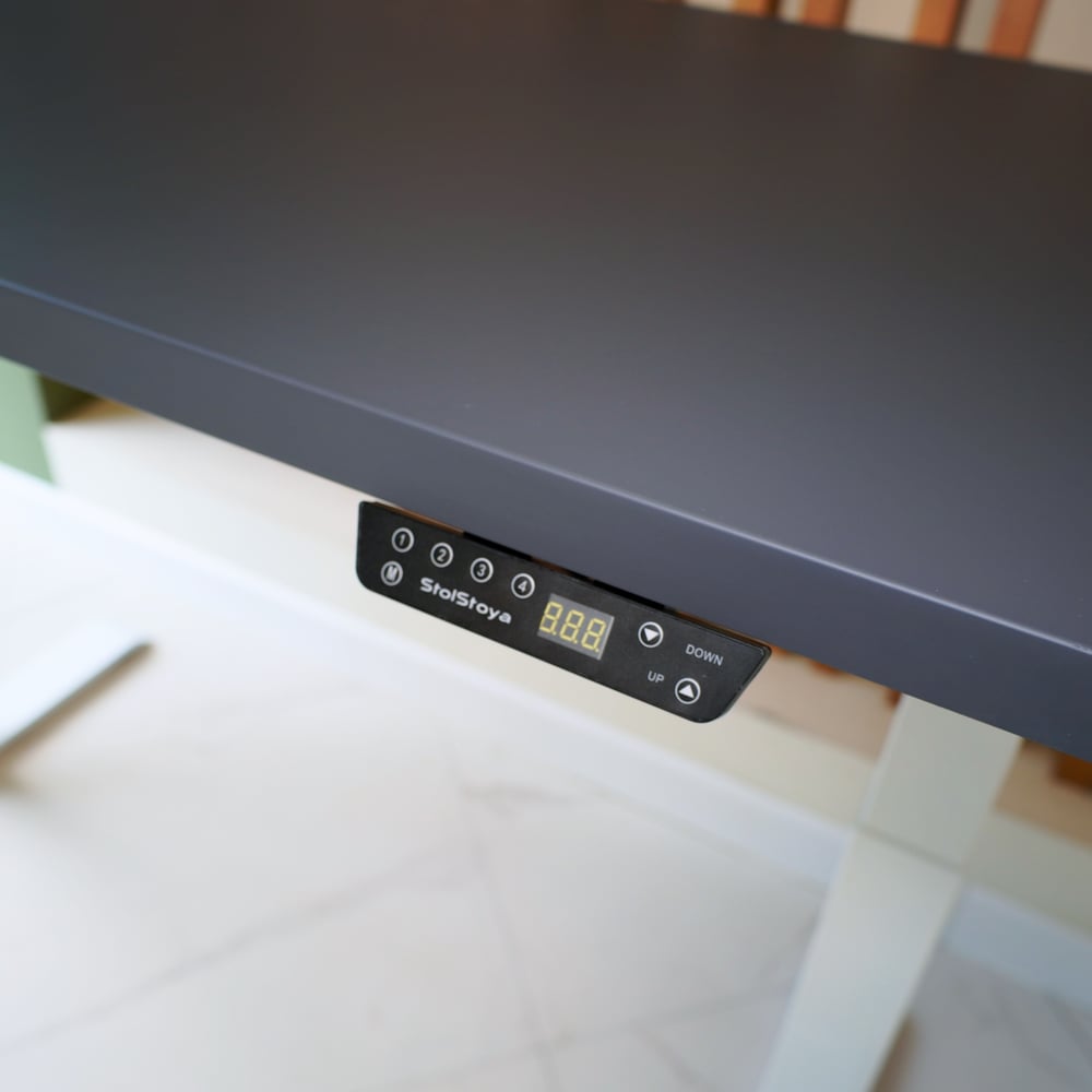 Стол с регулируемой высотой StolStoya МОТОР UP подстолье белое и столешница МДФ эмаль Сланцево-серая SE211I140WSS