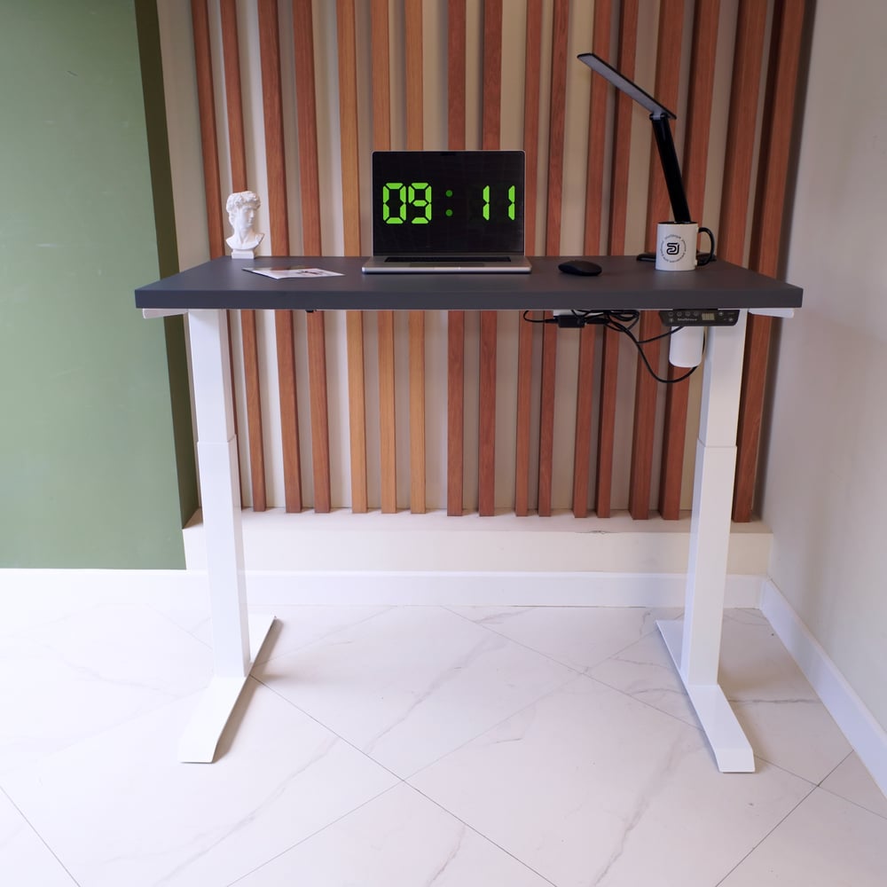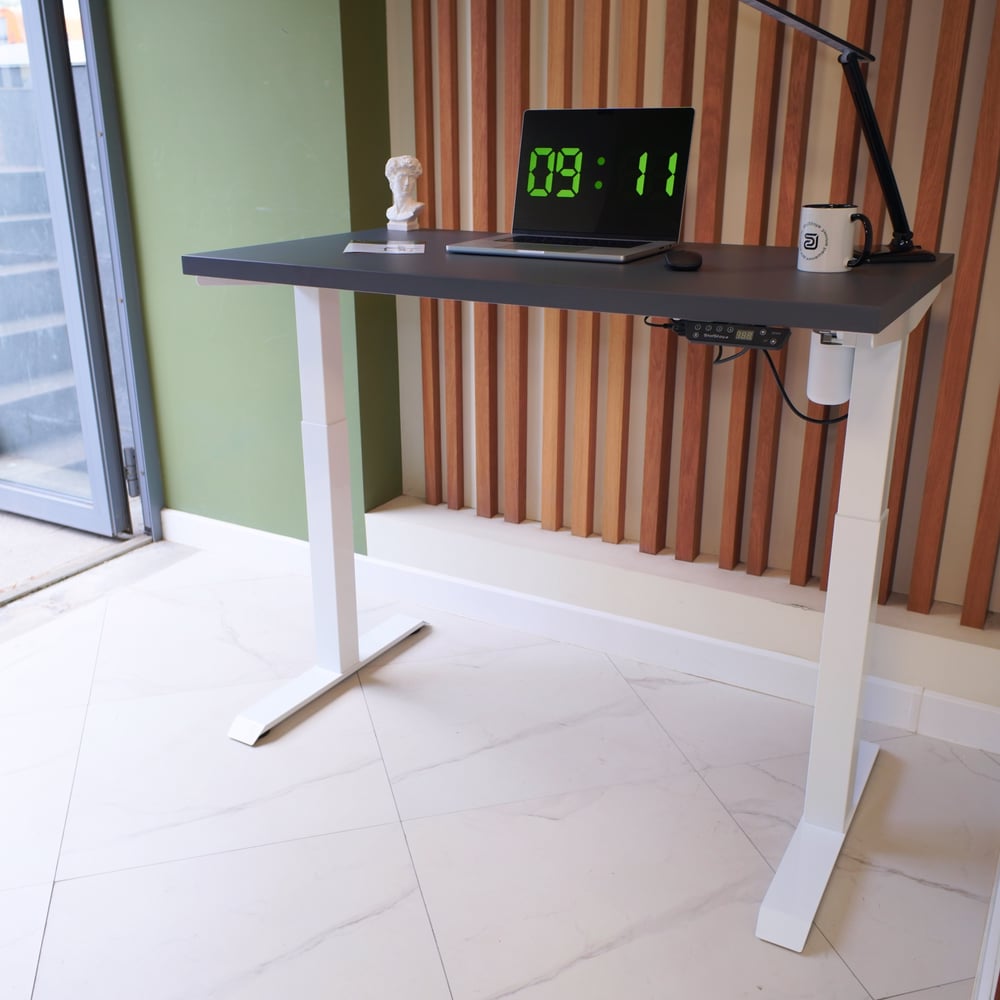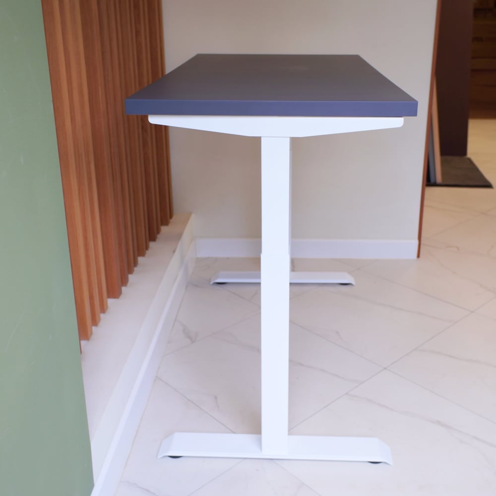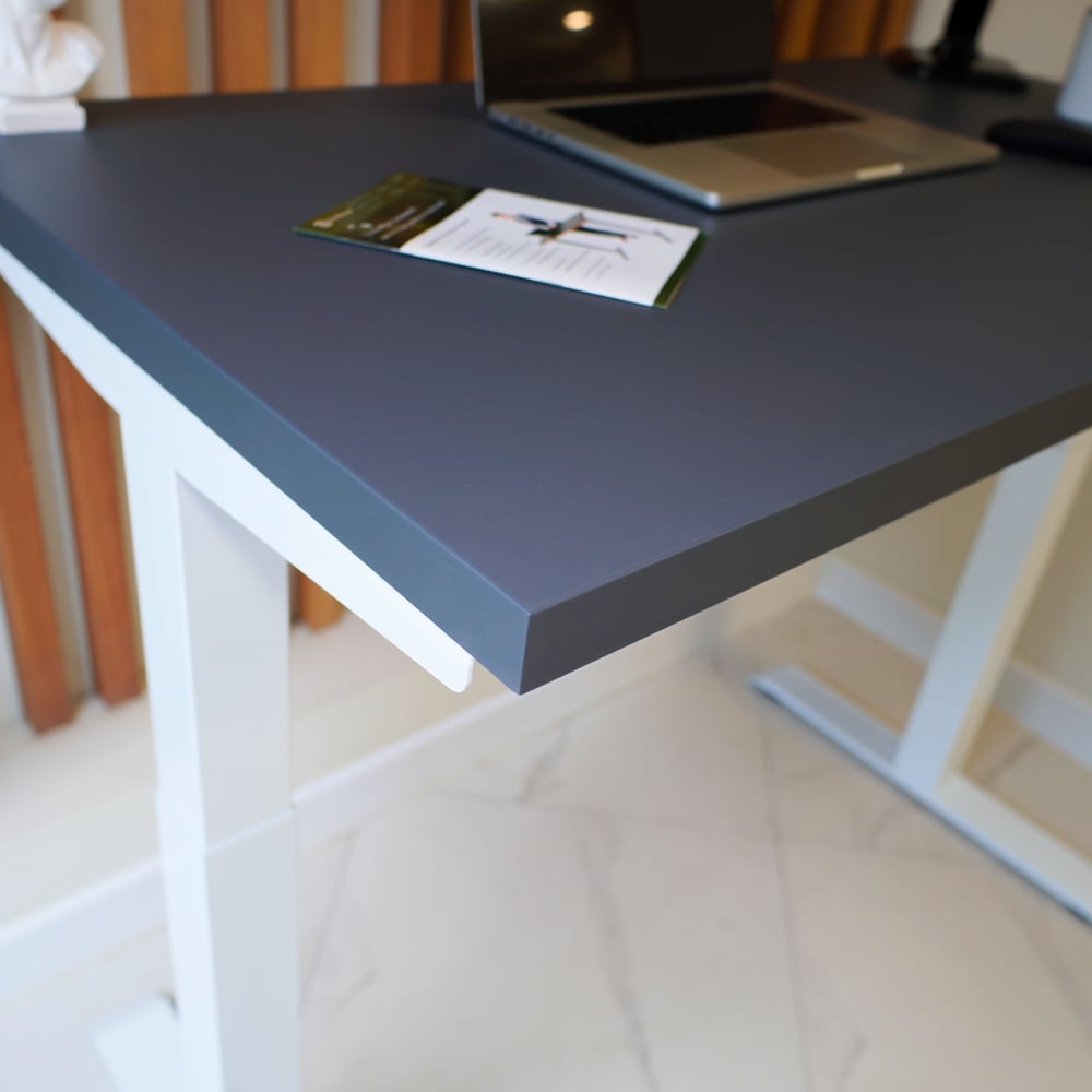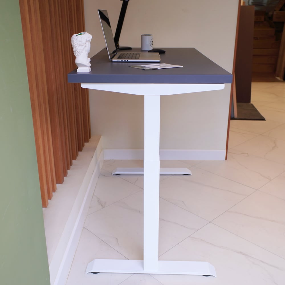 Стол с регулируемой высотой StolStoya МОТОР UP подстолье белое и столешница МДФ эмаль Сланцево-серая SE211I140WSS