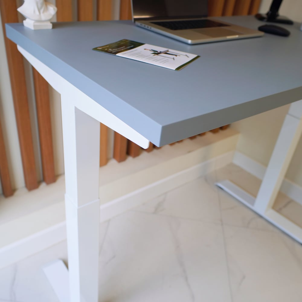 Стол с регулируемой высотой StolStoya МОТОР UP подстолье белое и столешница МДФ эмаль Серая 140x70 SE211/140WS