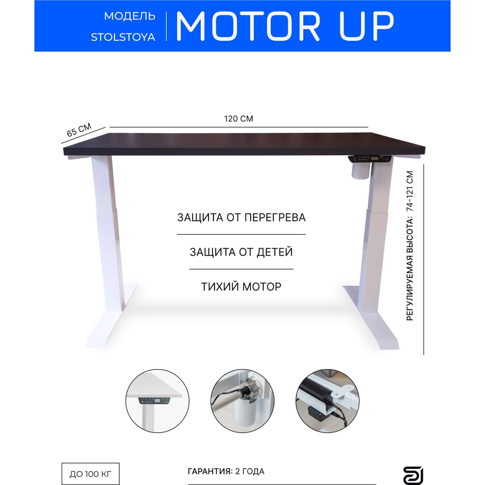 Стол с регулируемой высотой StolStoya МОТОР UP подстолье белое и столешница МДФ эмаль Сланцево-серая SE211I120WSS