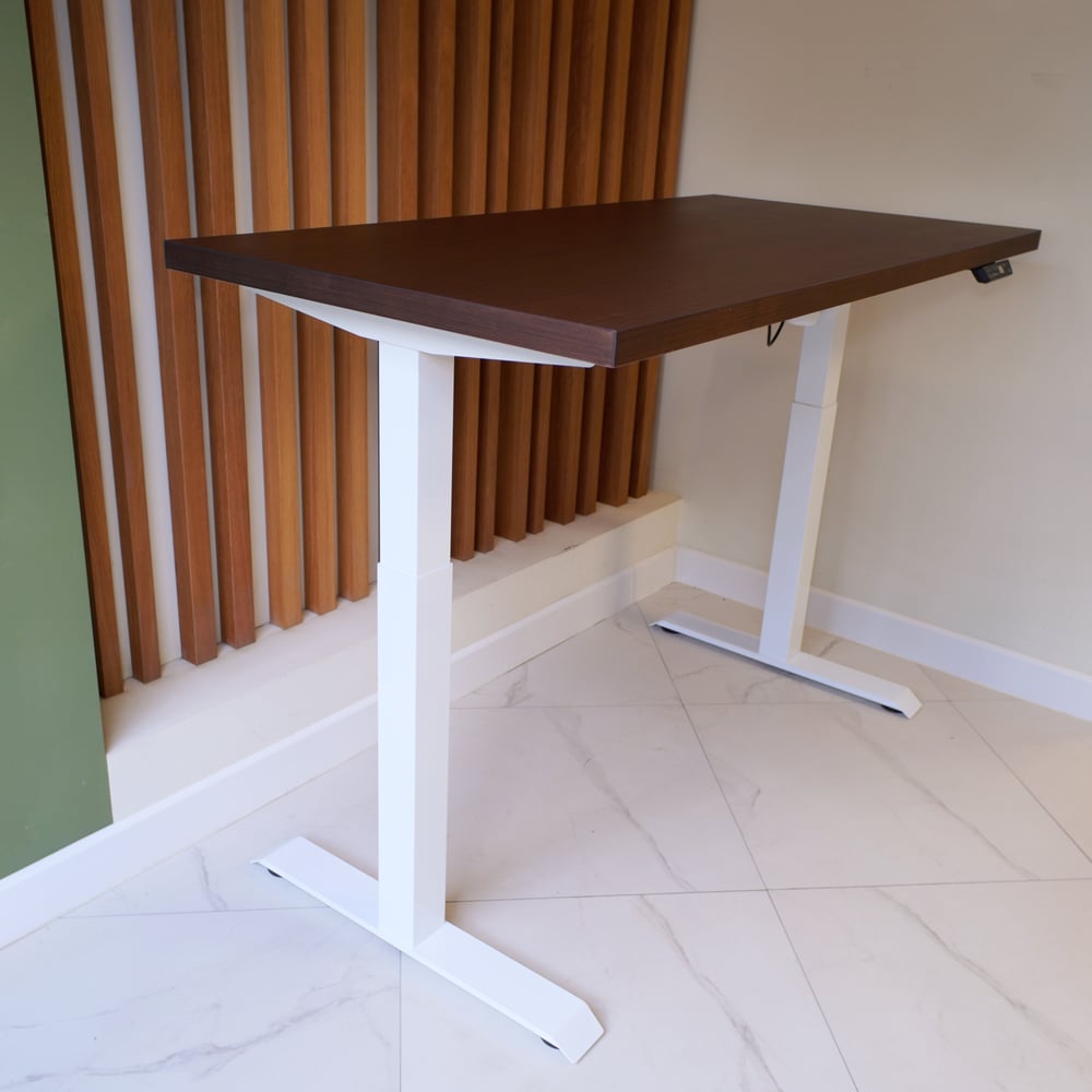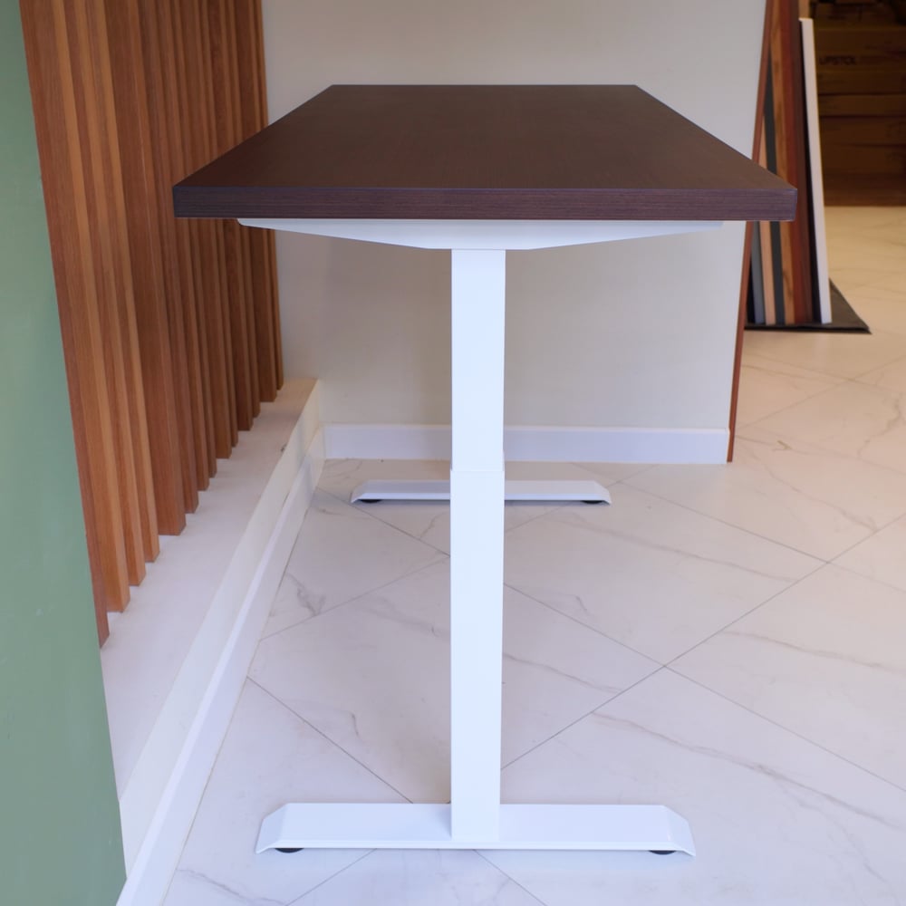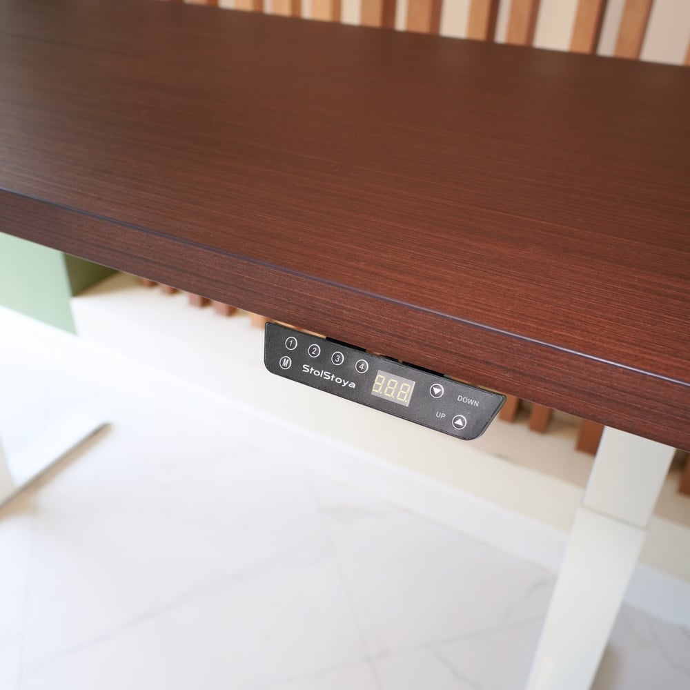 Стол с регулируемой высотой StolStoya МОТОР UP подстолье белое и столешница МДФ шпон Венге 140x70 SE211/140WV