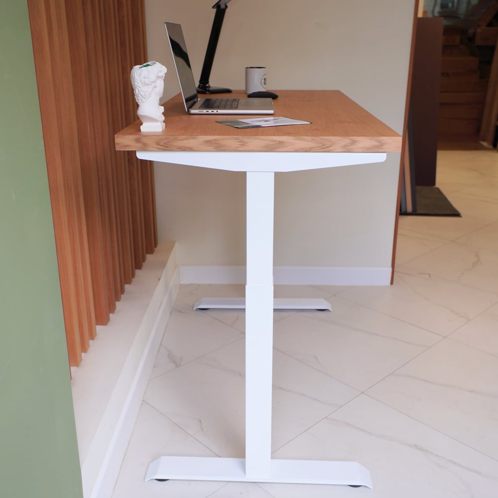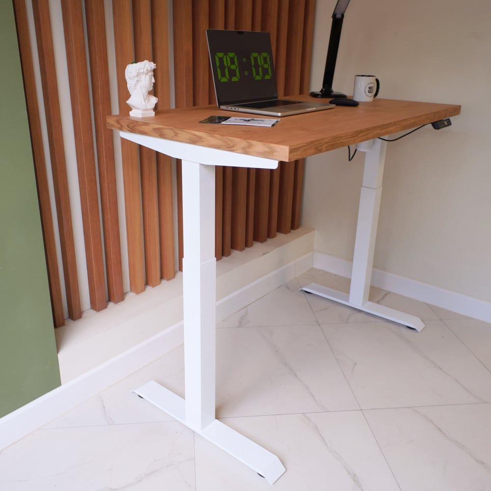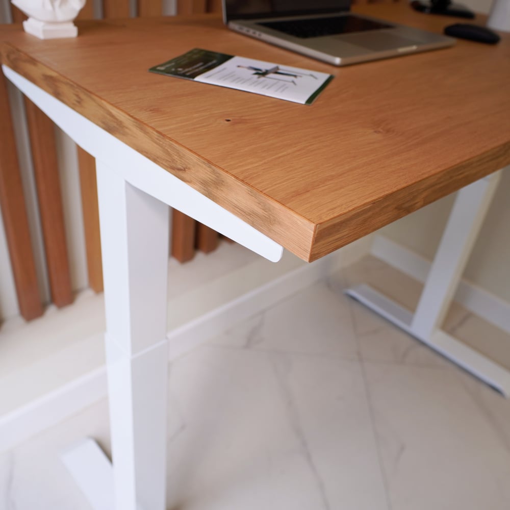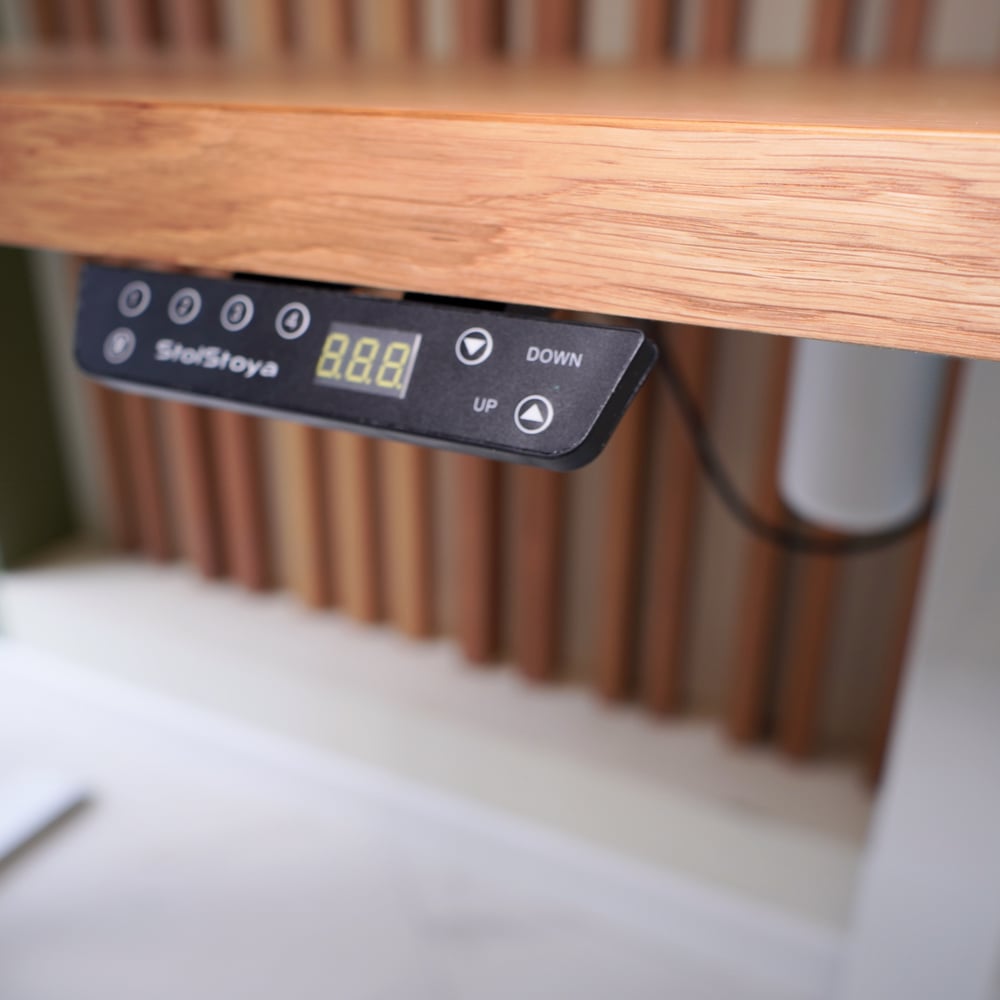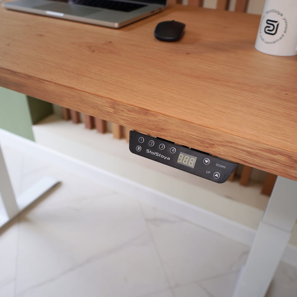 Стол с регулируемой высотой StolStoya МОТОР UP подстолье белое и столешница МДФ шпон Дуб европейский SE211I140WDE