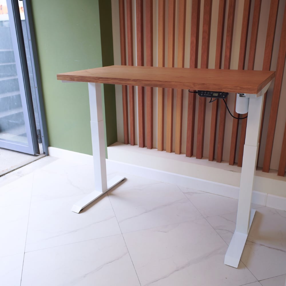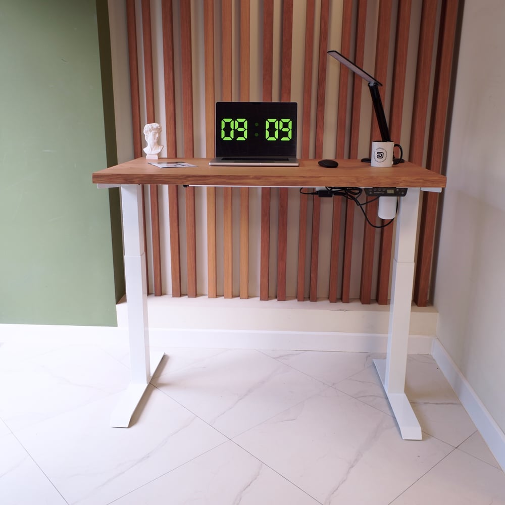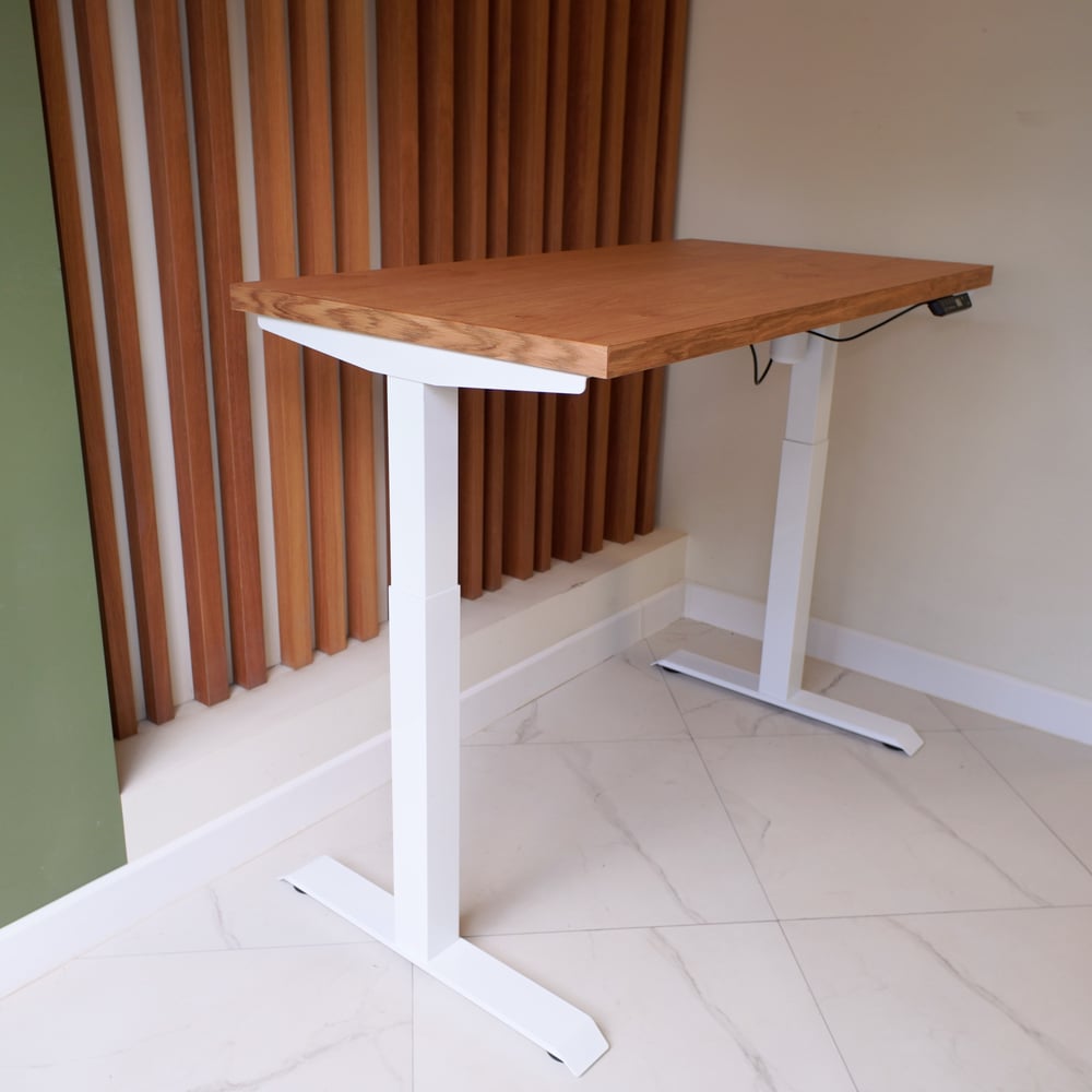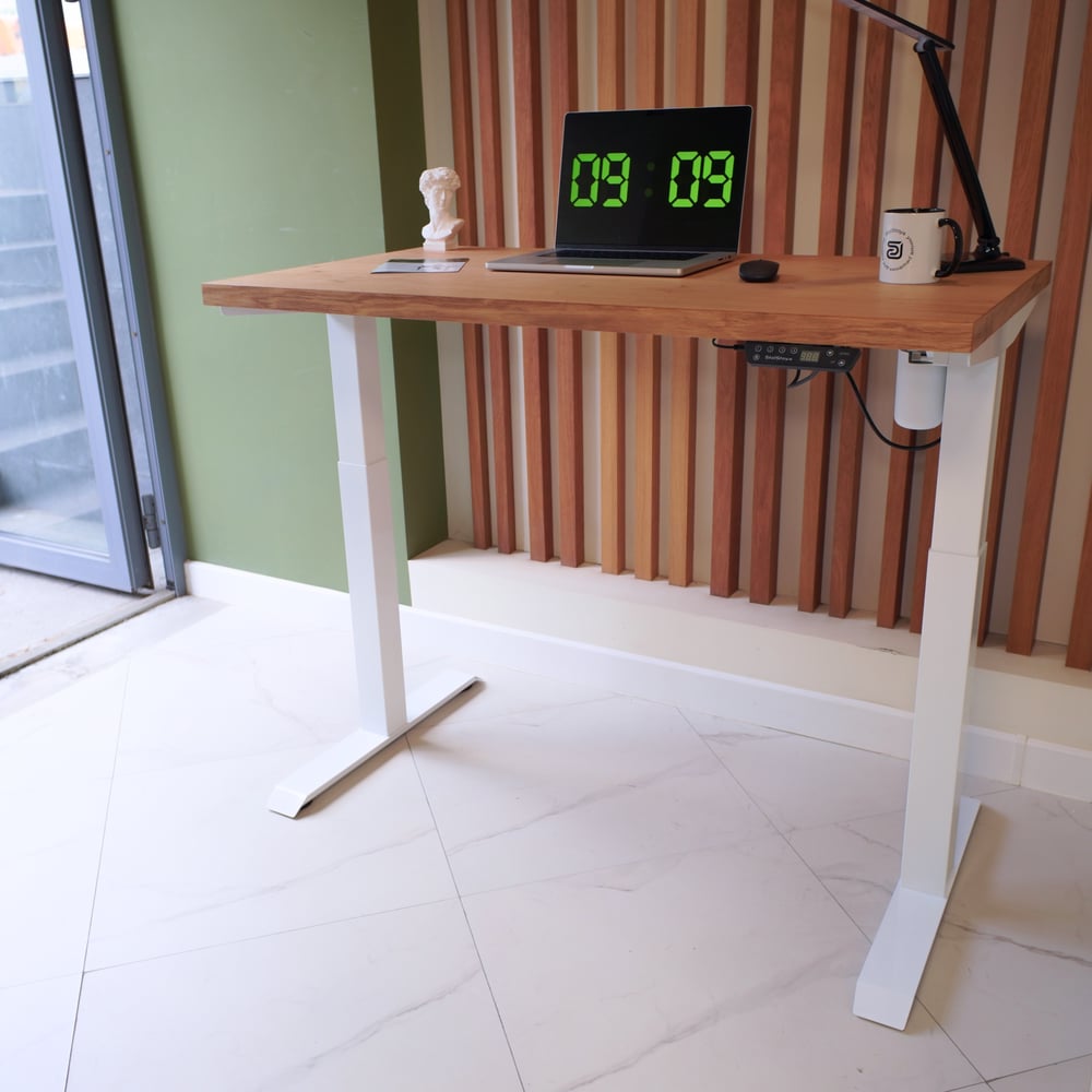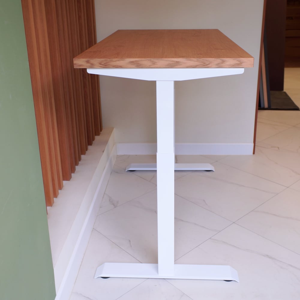 Стол с регулируемой высотой StolStoya МОТОР UP подстолье белое и столешница МДФ шпон Дуб европейский SE211I140WDE