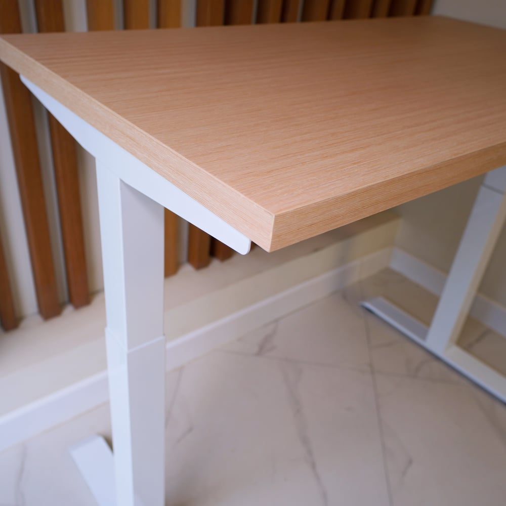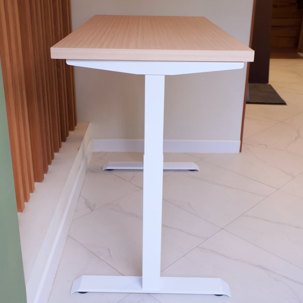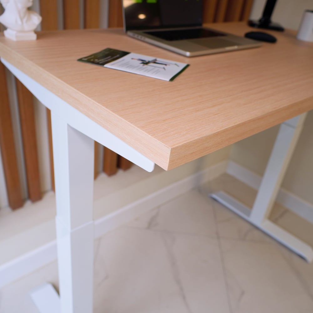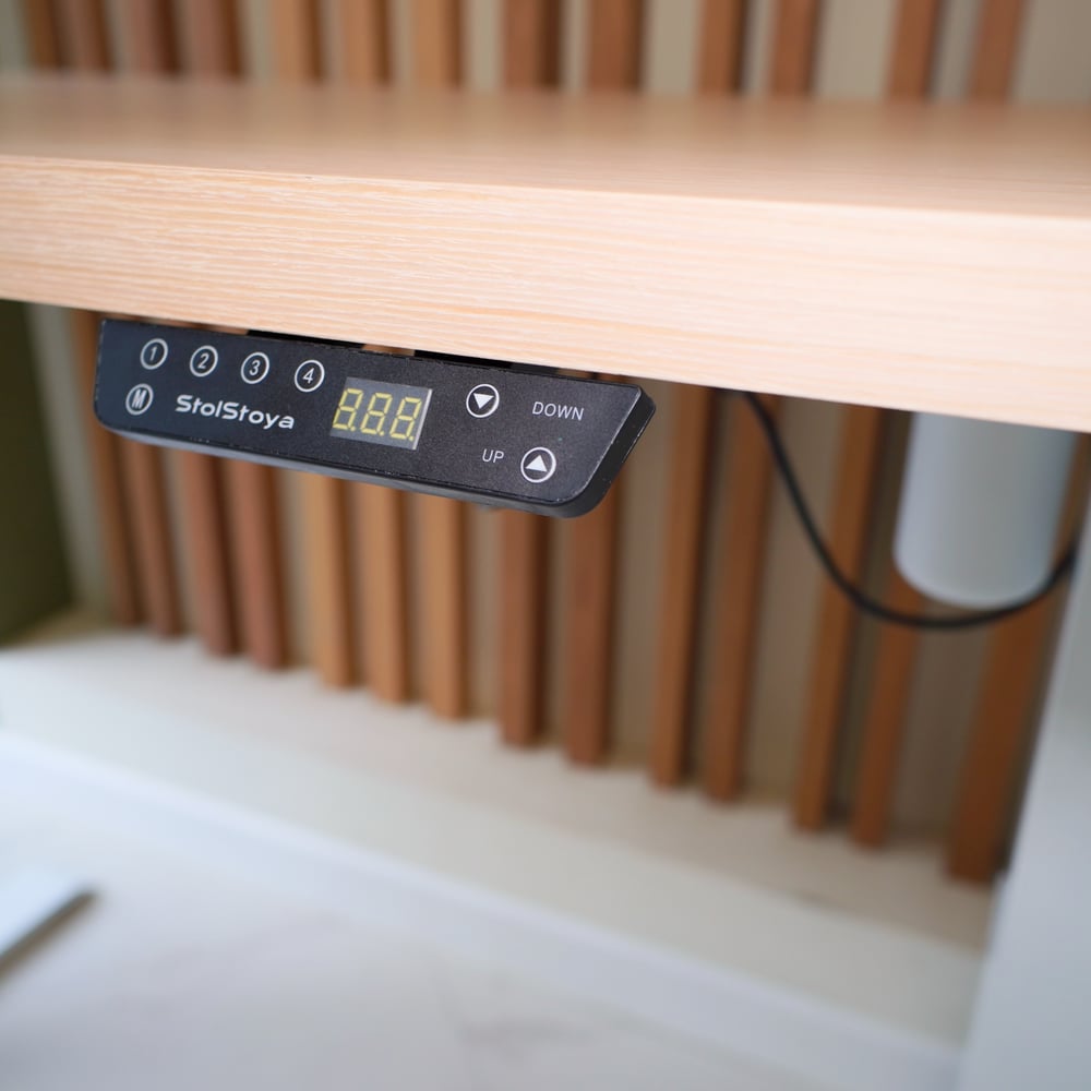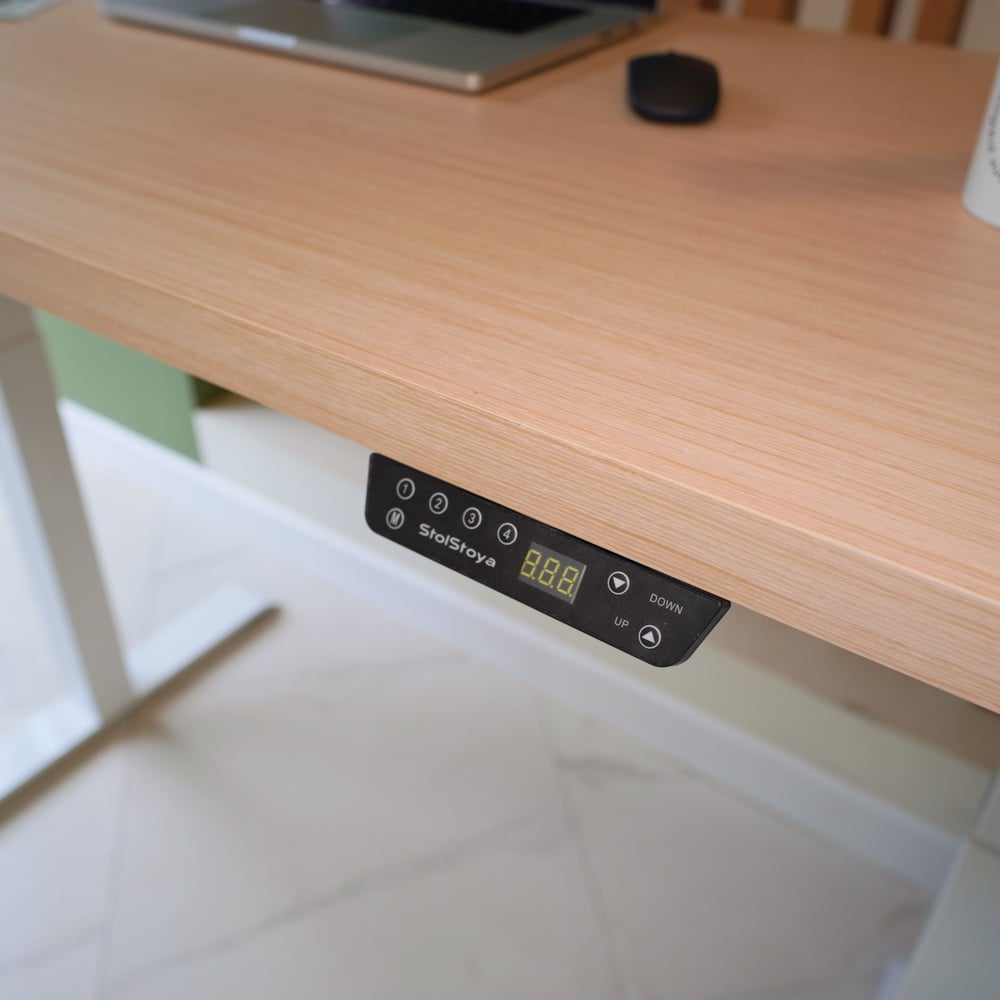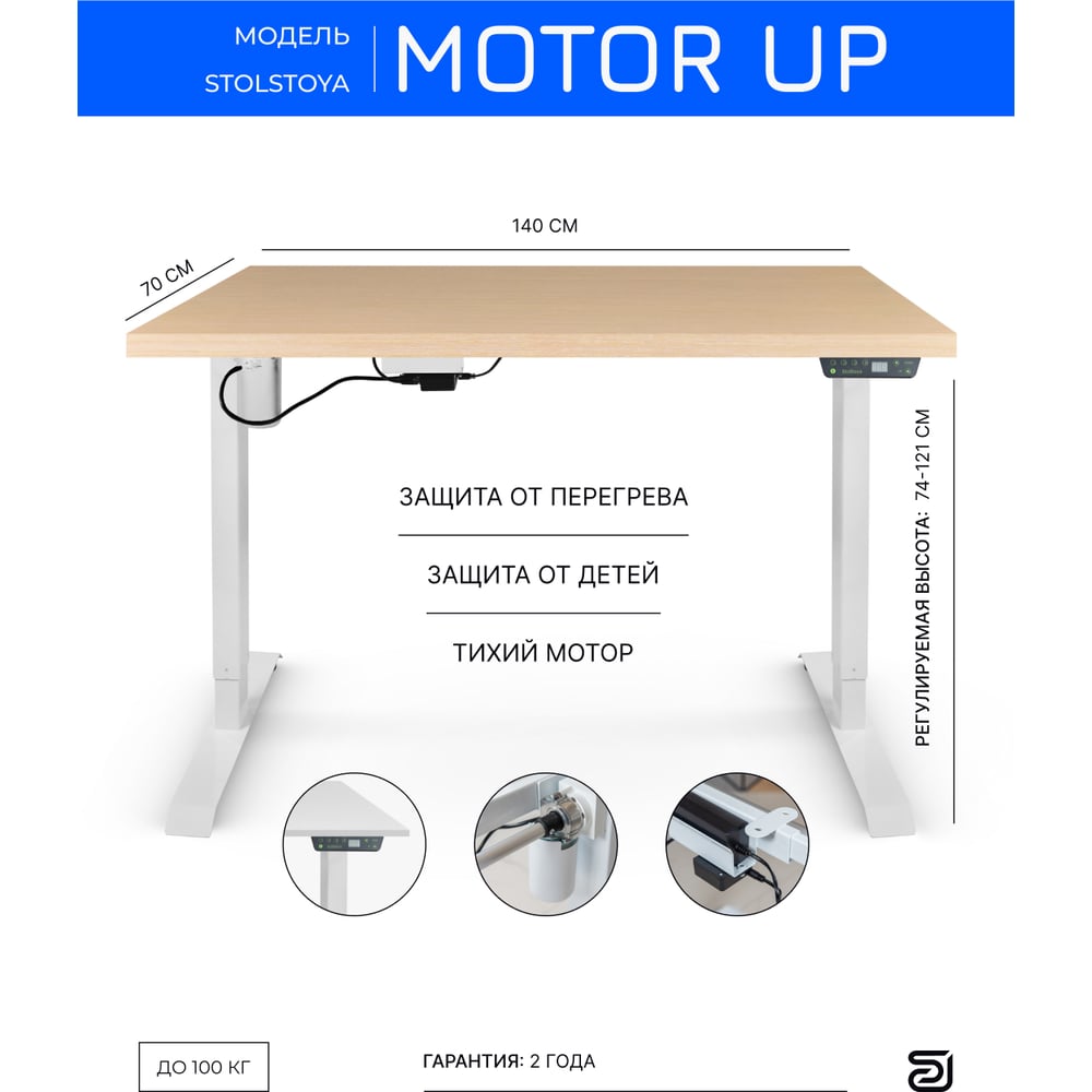 Стол с регулируемой высотой StolStoya МОТОР UP подстолье белое и столешница МДФ шпон Беленый дуб 140x70 SE211I140WBD