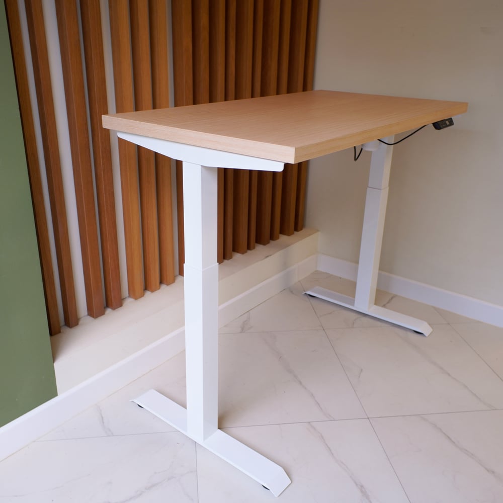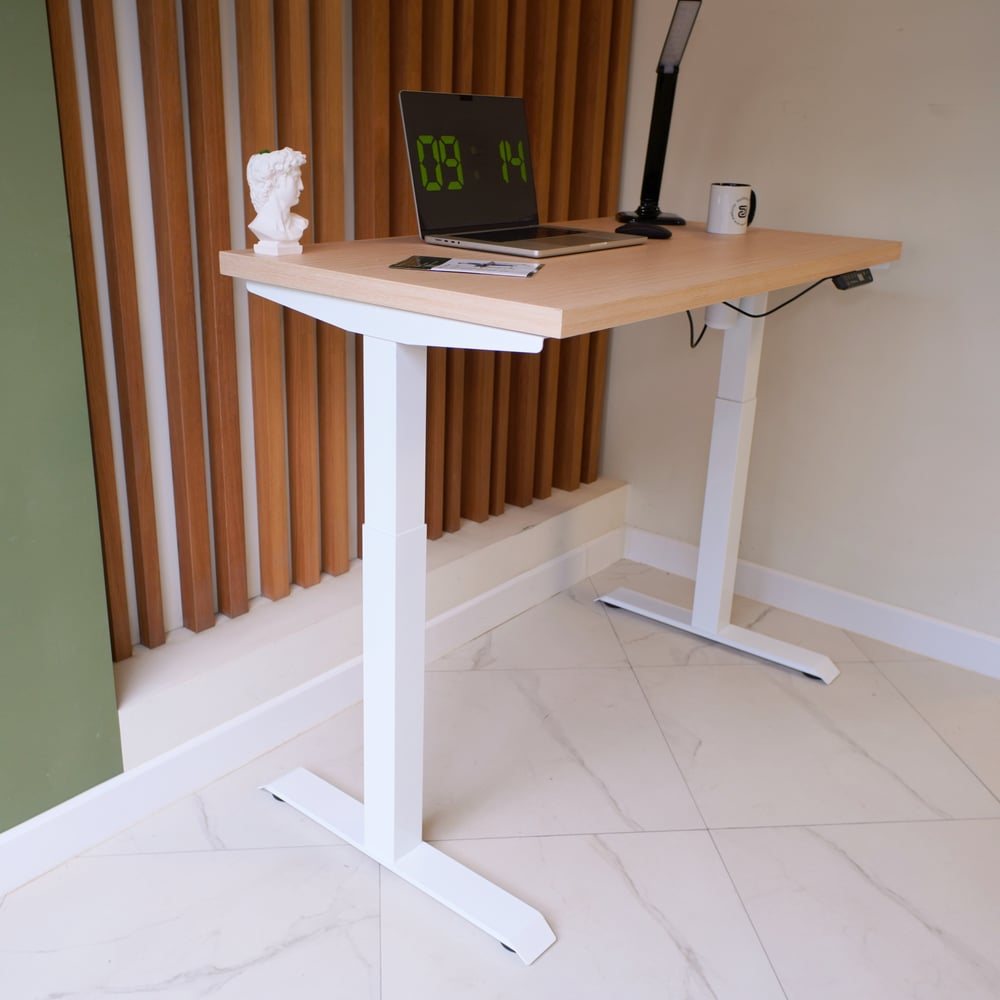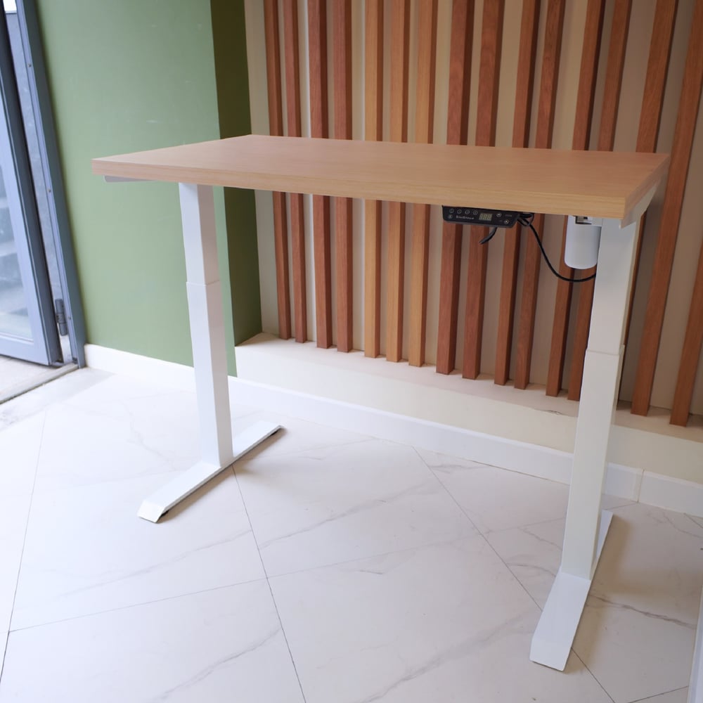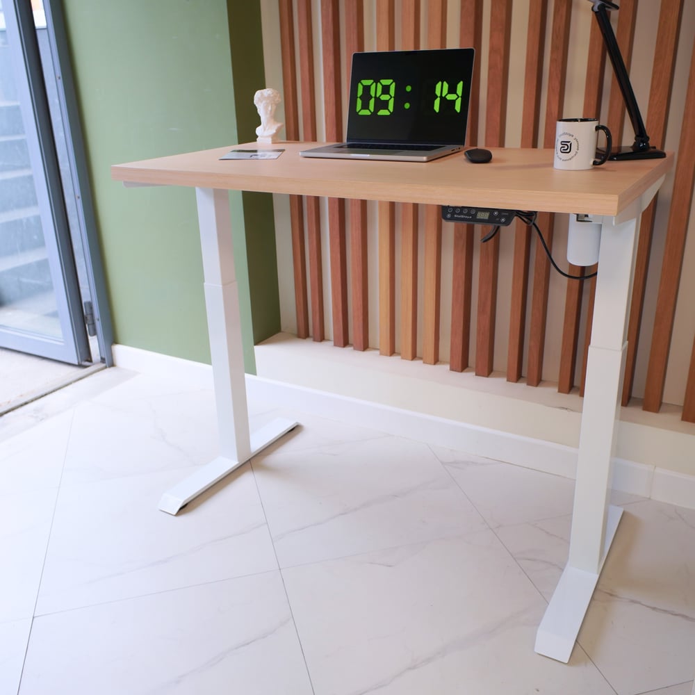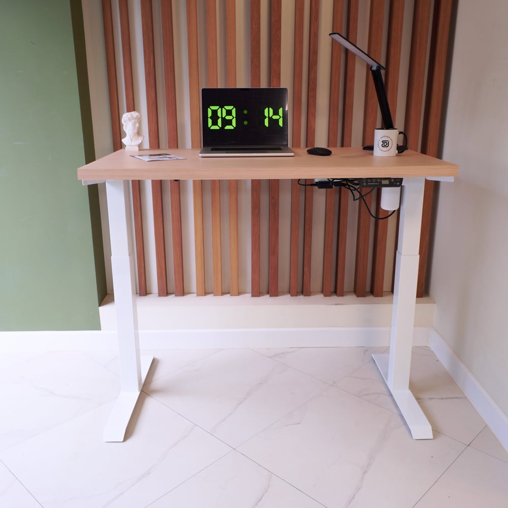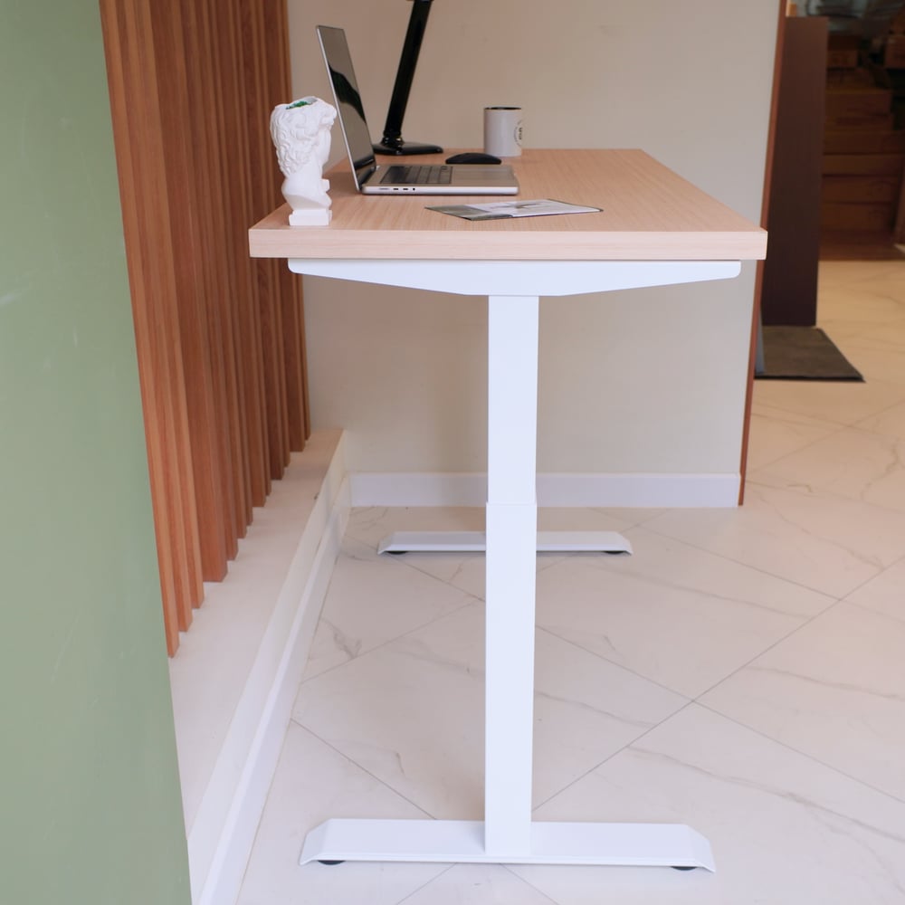 Стол с регулируемой высотой StolStoya МОТОР UP подстолье белое и столешница МДФ шпон Беленый дуб 140x70 SE211I140WBD