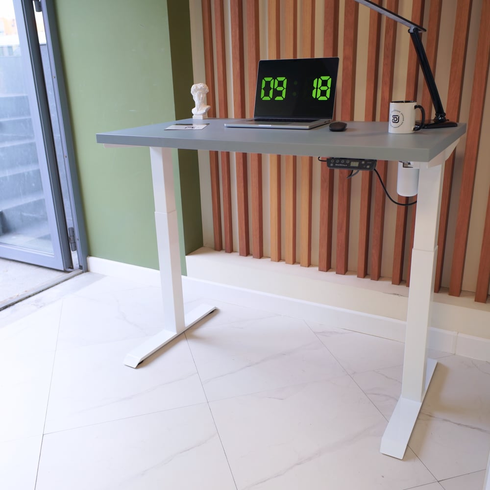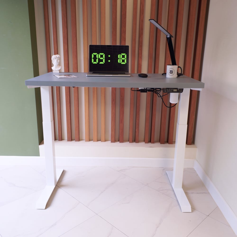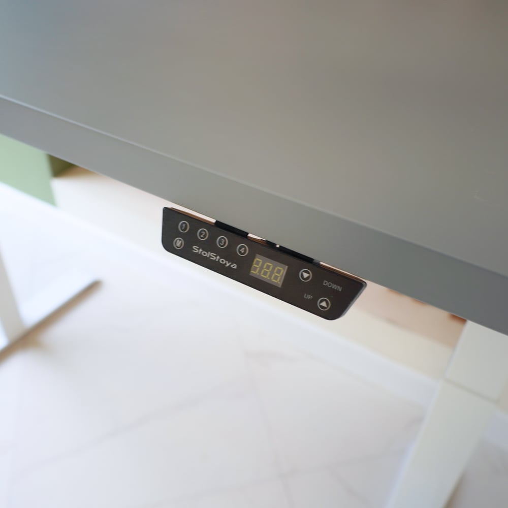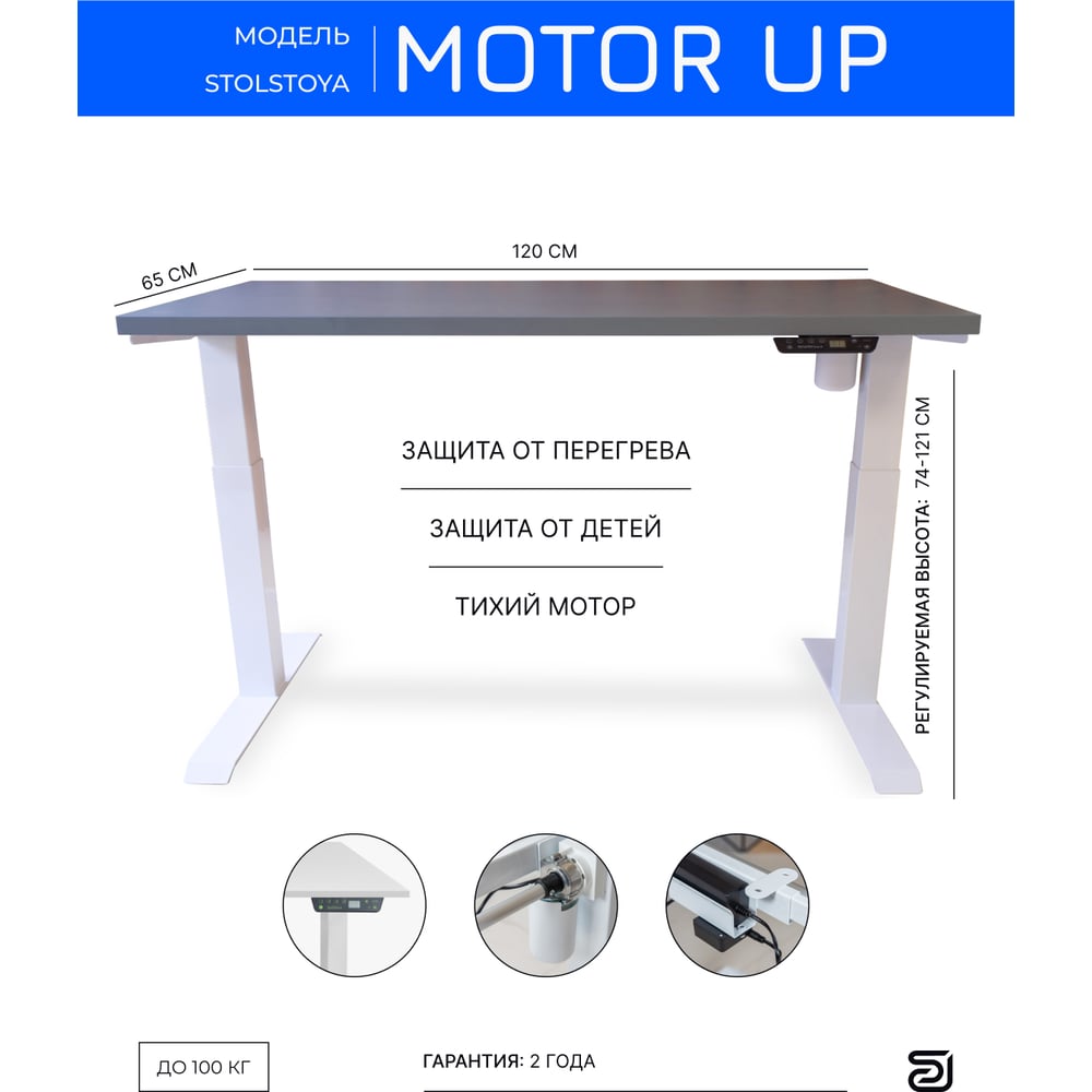 Стол с регулируемой высотой StolStoya МОТОР UP подстолье белое и столешница МДФ эмаль Серая 120x65 SE211/120WS
