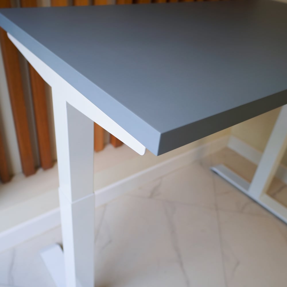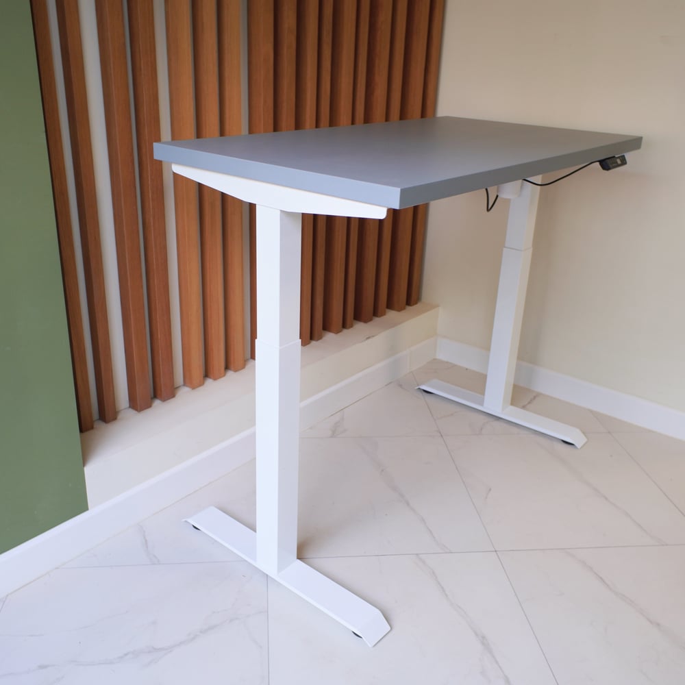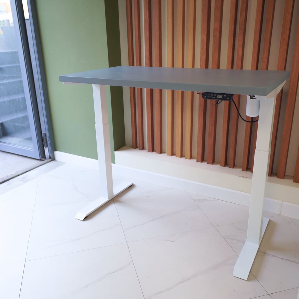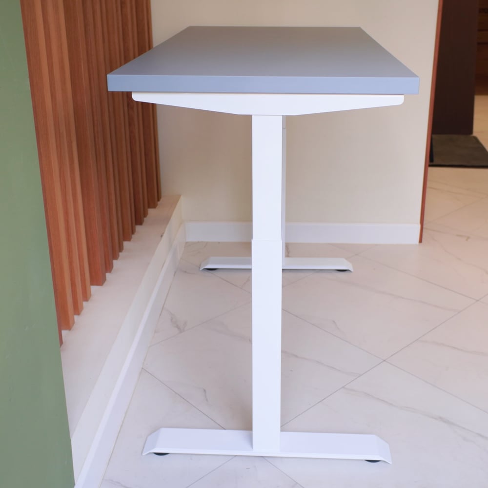 Стол с регулируемой высотой StolStoya МОТОР UP подстолье белое и столешница МДФ эмаль Серая 120x65 SE211/120WS