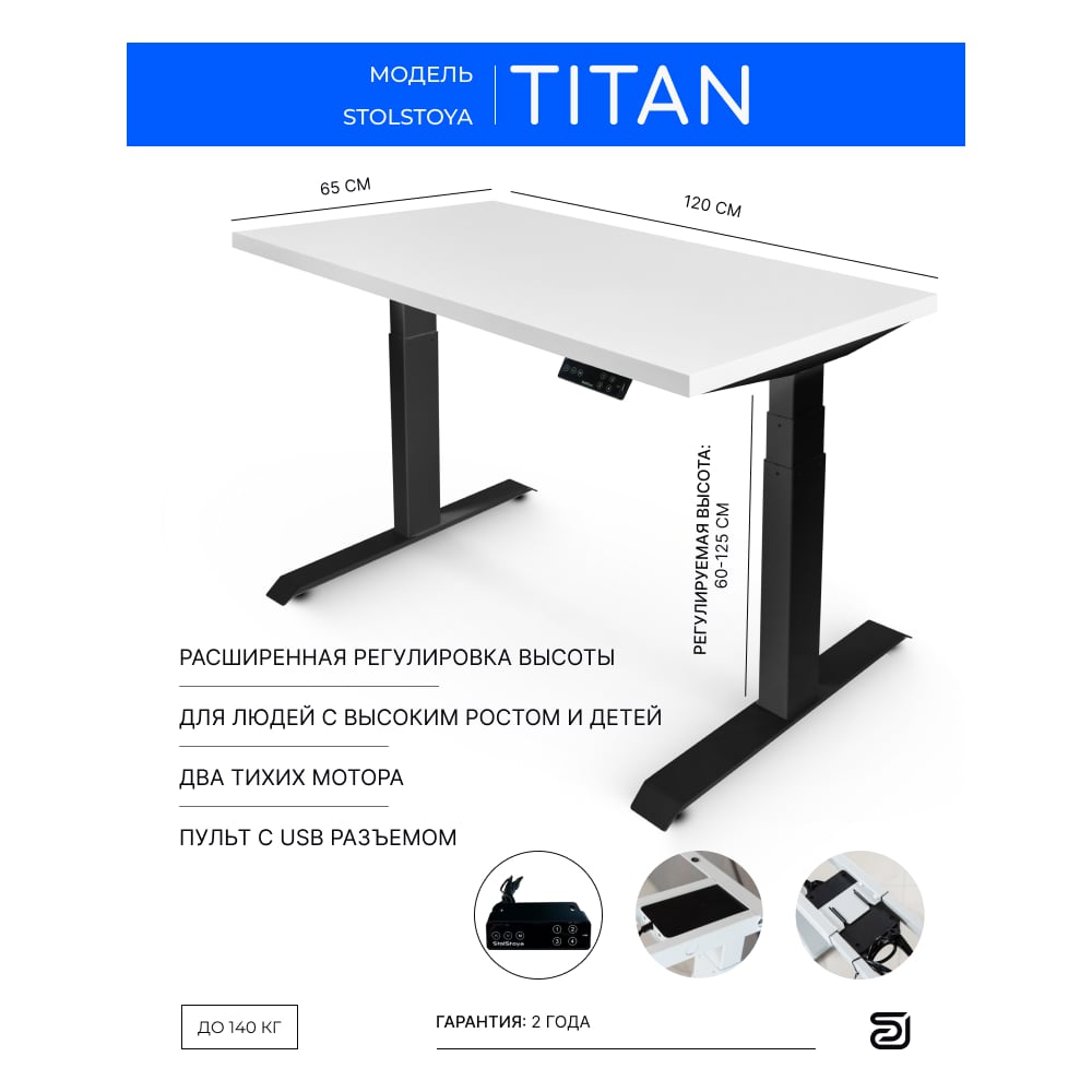 Стол двухмоторный с регулируемой высотой StolStoya ТИТАН подстолье черное и столешница МДФ эмаль SE221IBW12065