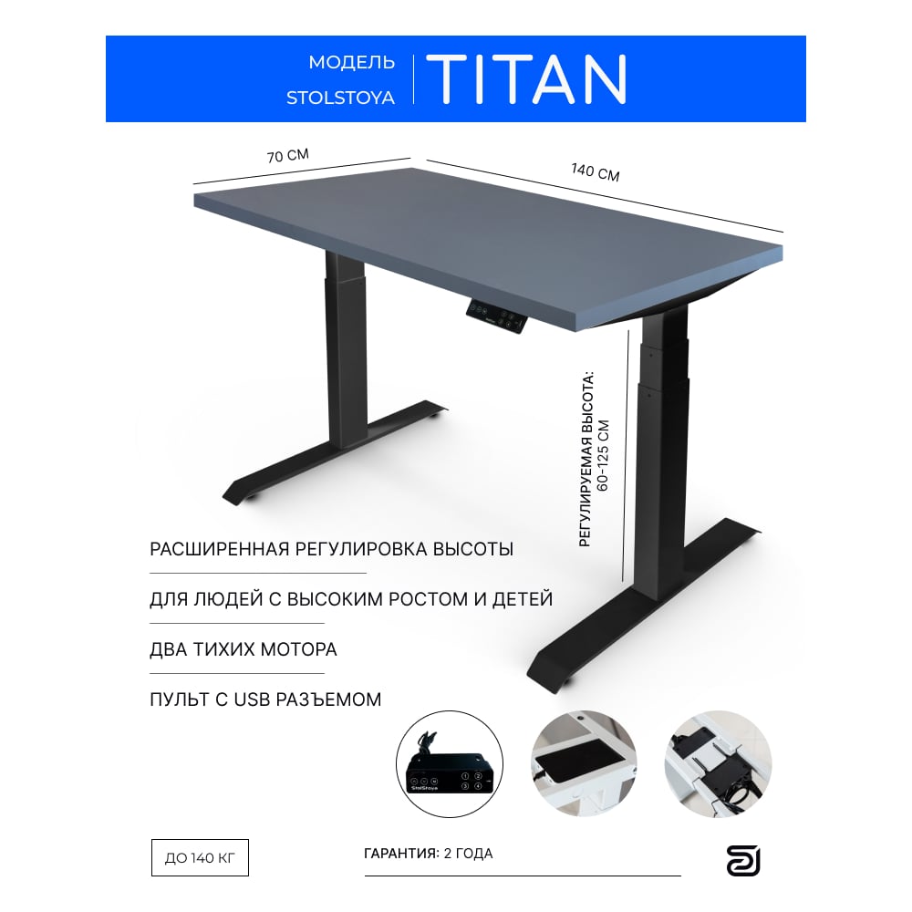 Стол двухмоторный с регулируемой высотой StolStoya ТИТАН подстолье черное и столешница МДФ эмаль SE221IBSS14070