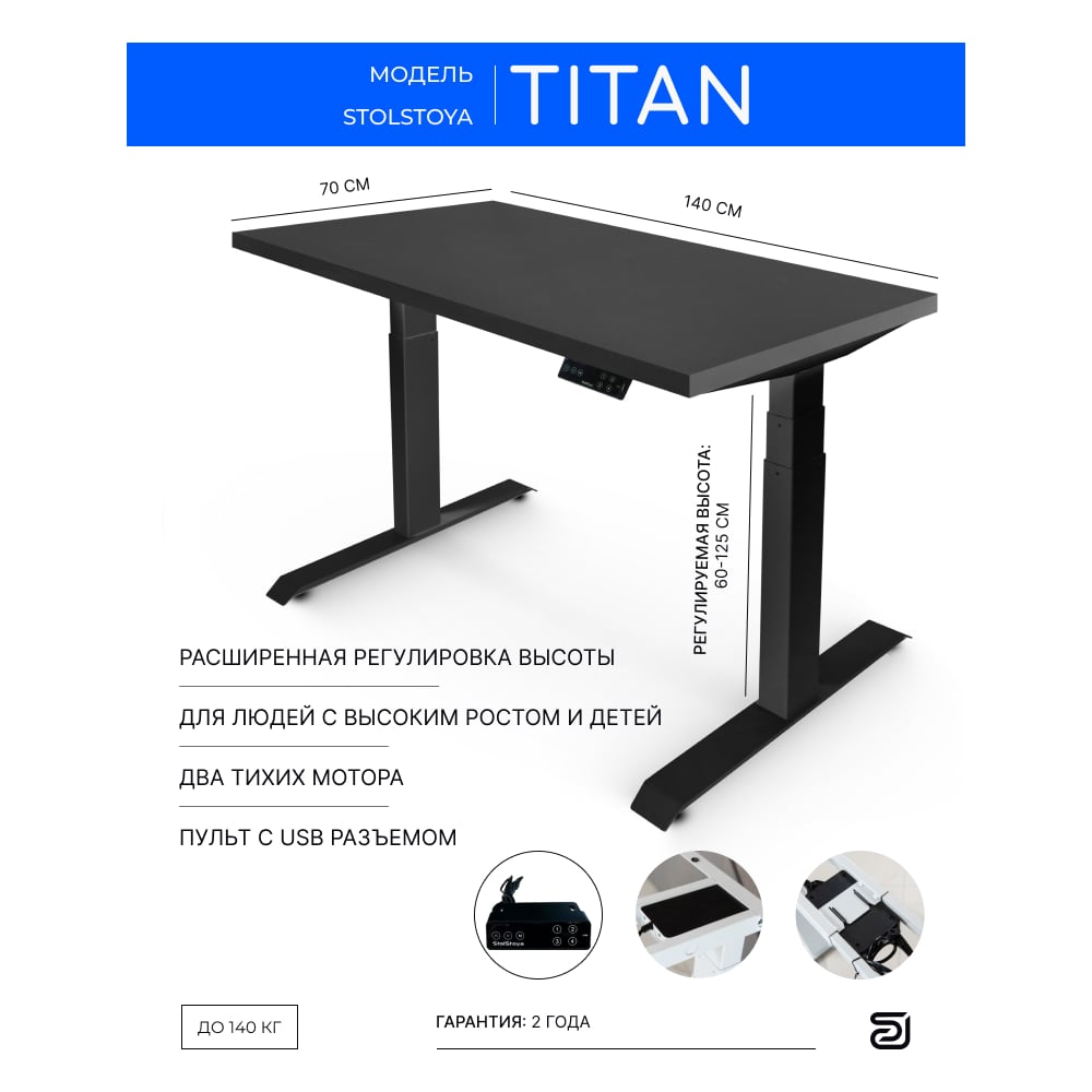 Стол двухмоторный с регулируемой высотой StolStoya ТИТАН подстолье черное и столешница МДФ эмаль SE221IBB14070