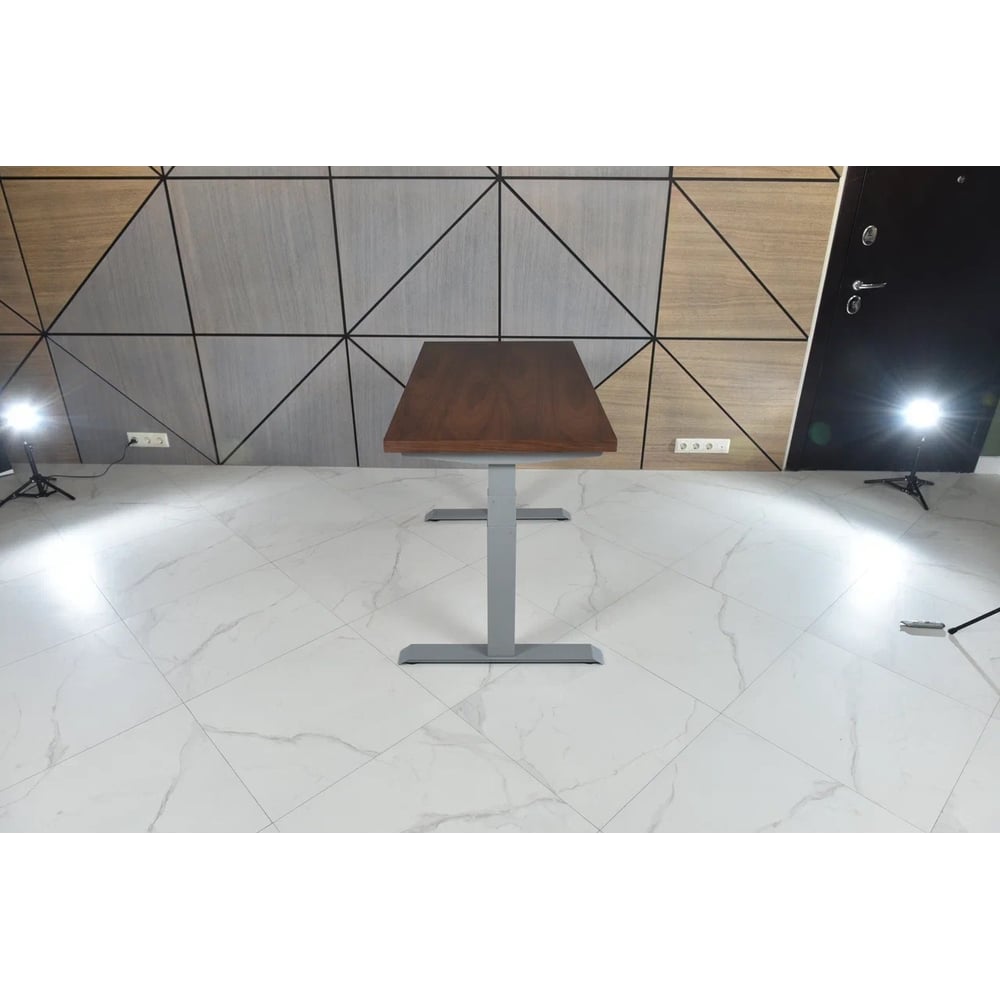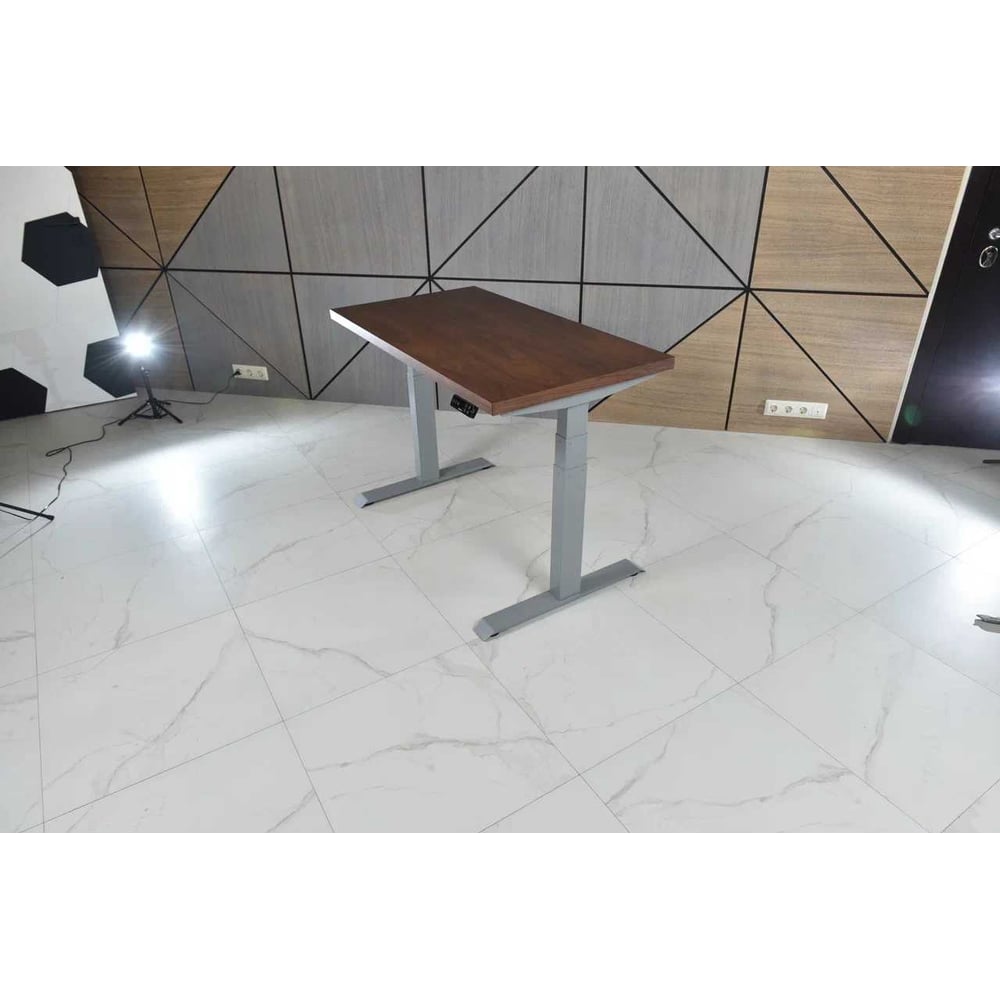Стол с регулируемой высотой StolStoya ТИТАН рама серая и столешница МДФ шпон амер.орех 120х65 SE221ISAO12065