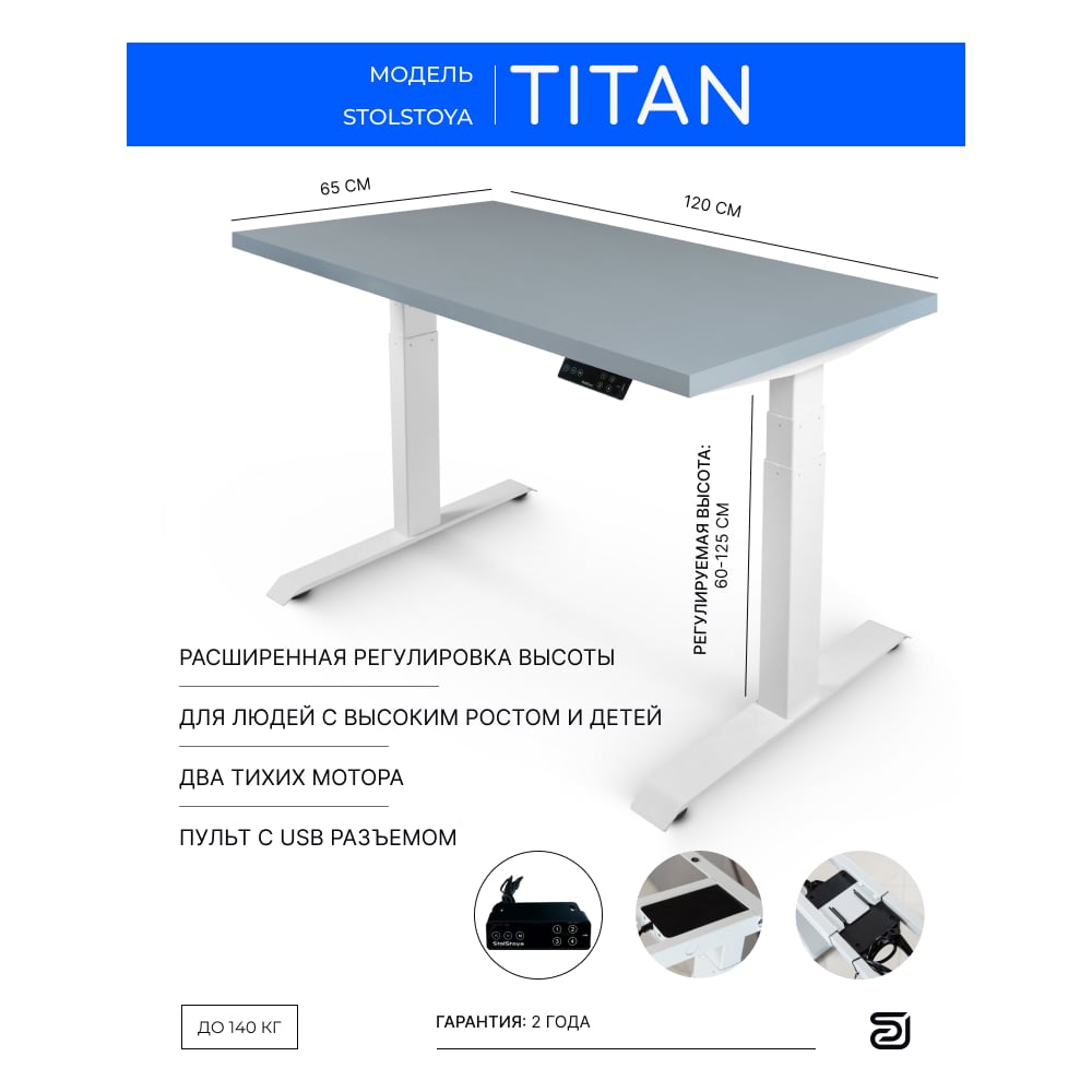 Стол двухмоторный с регулируемой высотой StolStoya ТИТАН подстолье белое и столешница МДФ эмаль SE221I120WS
