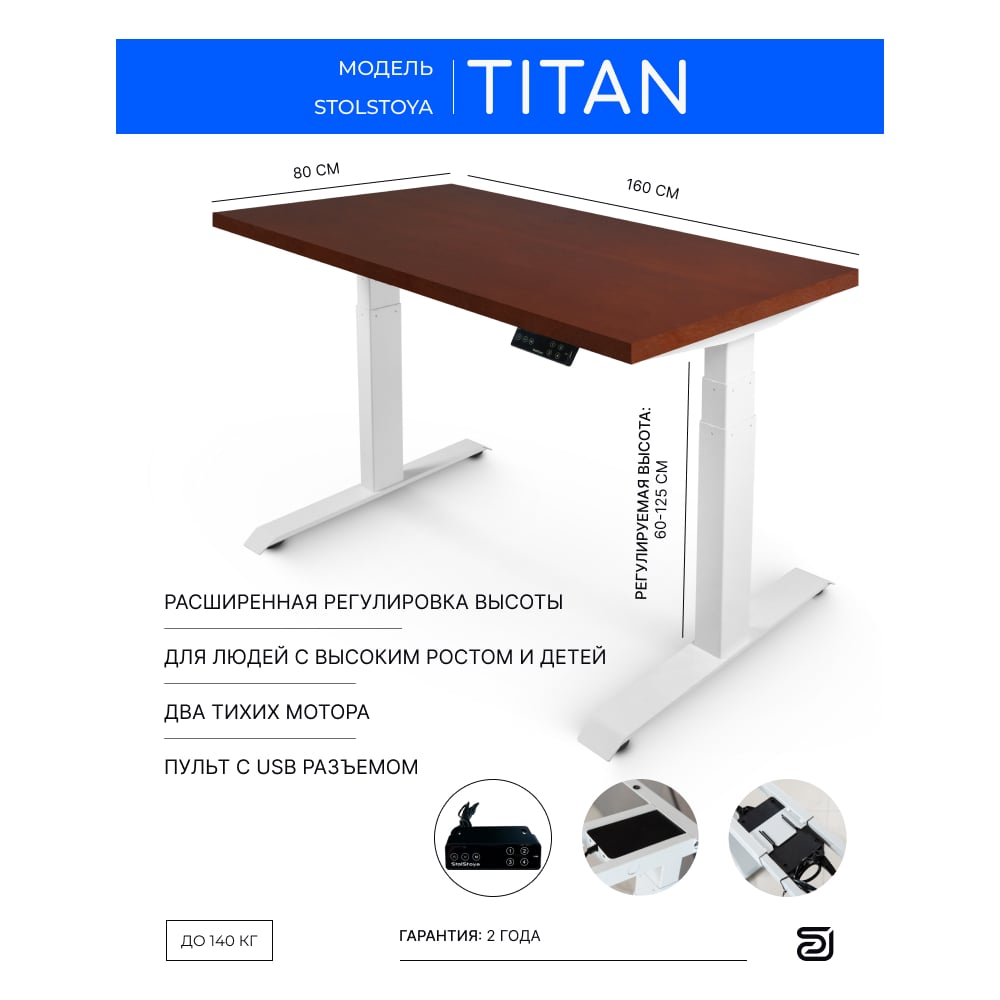 Стол с регулируемой высотой StolStoya ТИТАН 160x80 см, рама белая, столешница МДФ, шпон, красное дерево SE221IWKD16080