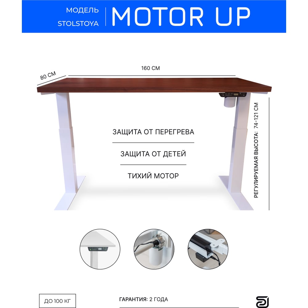 Стол с регулируемой высотой StolStoya МОТОР UP подстолье белое, столешница МДФ, шпон американский орех, 160x80 SE211/160WAO