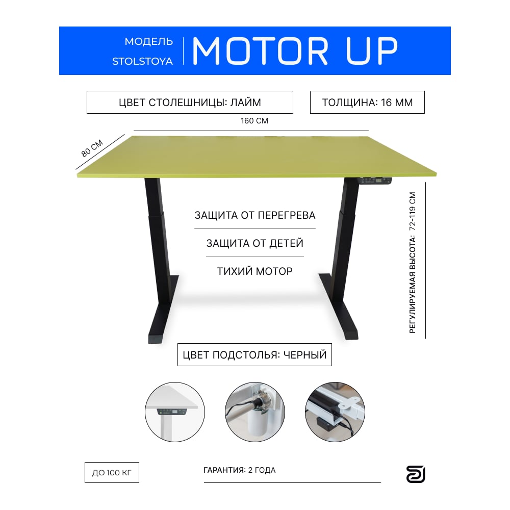 Стол с регулируемой высотой StolStoya МОТОР UP рама черная, столешница ЛДСП, Лайм, 160x80 PE211IBSLSL160