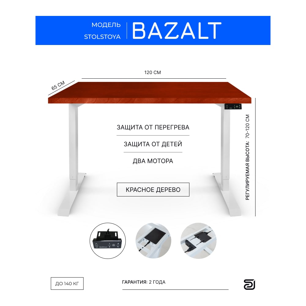Стол с электрической регулировкой высоты StolStoya BAZALT рама белая, столешница мдф красное дерево (шпон), 120x65 SE222W120KD