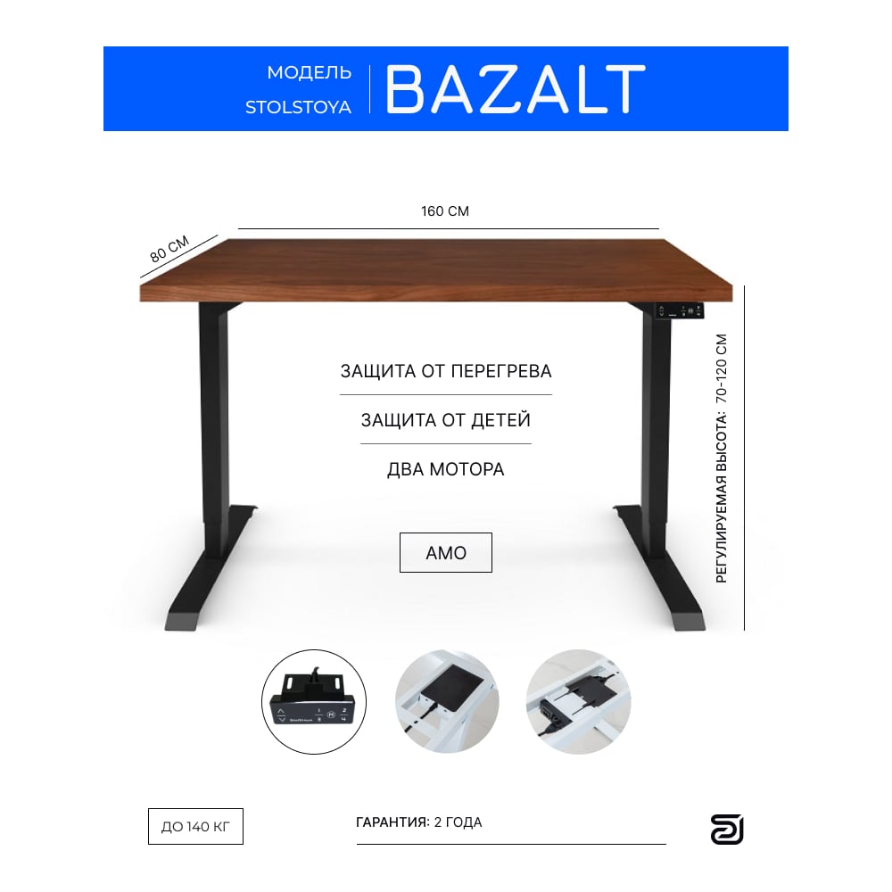 Стол с электрической регулировкой высоты StolStoya BAZALT рама черная, столешница мдф американский орех (шпон), 160x80 SE222B160AO