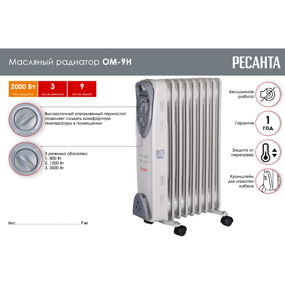 Масляный радиатор Ресанта ОМ-9Н 67/3/8