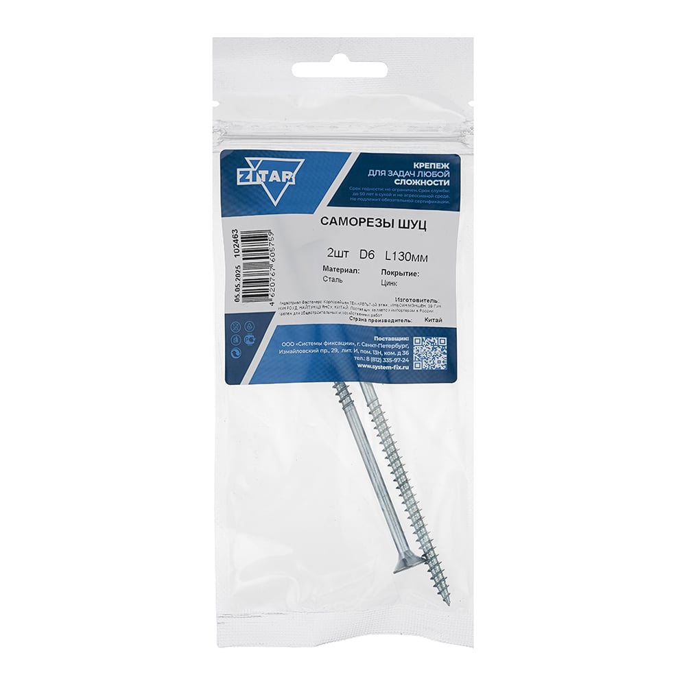 Саморез ШУц с потайной головкой 6,0x130 мм, 2 шт., пакет Zitar 102463