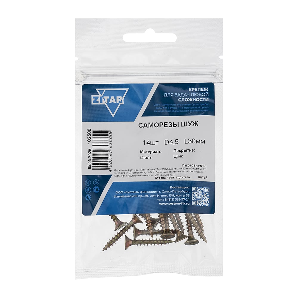 Саморез ШУж с потайной головкой 4,5x30 мм, 14 шт., пакет Zitar 102500