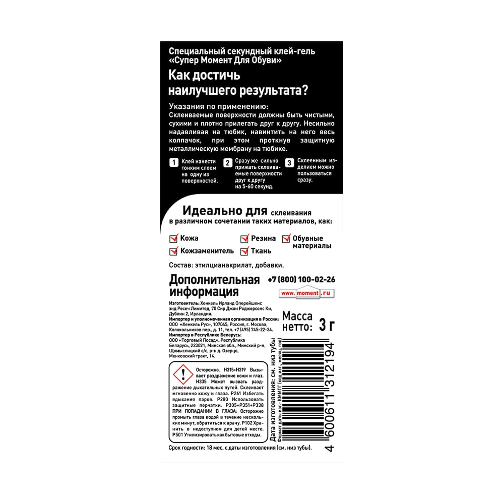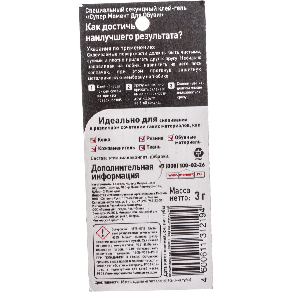 Супер клей обувной 3 грамма Момент 1694871