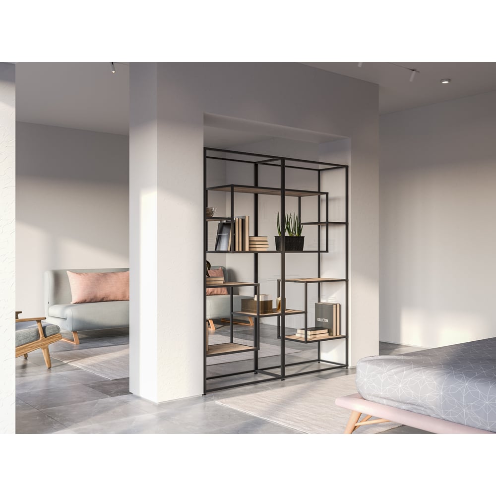 Книжный стеллаж НАЙДИ черный муар, лдсп дуб крафт табачный LSK-55004