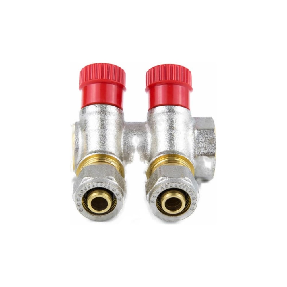 Коллектор Aquasfera латунь, обжимной клапан регулируемый, красный, 3/4", 3 выхода, Дн 16, 35 мм 7018-02 027-9012