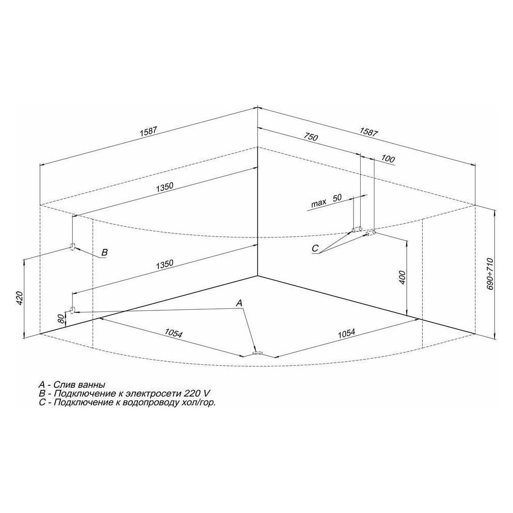 | Глубина ванны | 537 мм |